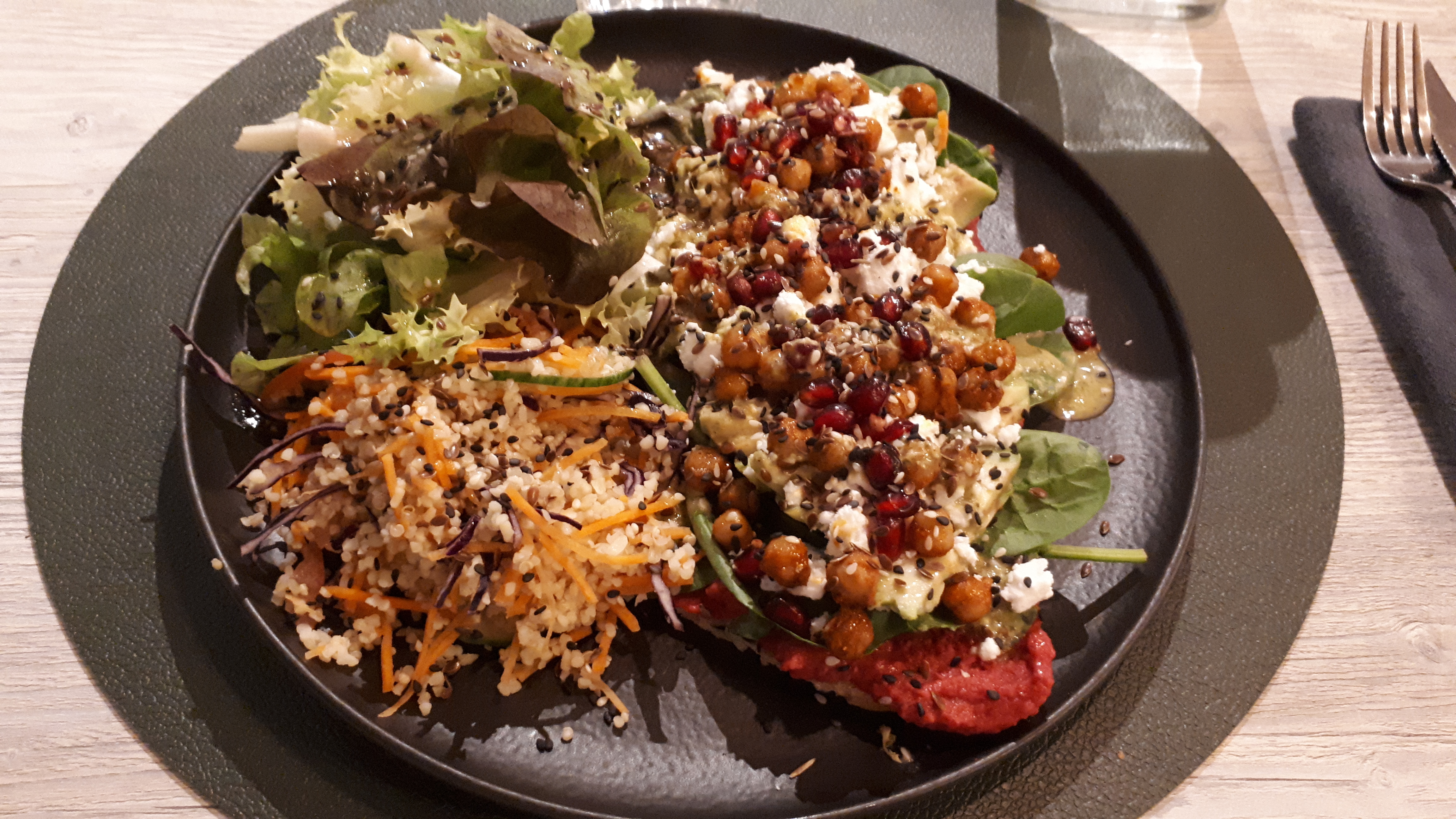 Réticente à l'idée de manger une salade et/ou une tartine, j'ai été conquise par mon assiette joliment présentée, fraîche, copieuse. Mon conjoint s'est également régalé. Nous recommandons!