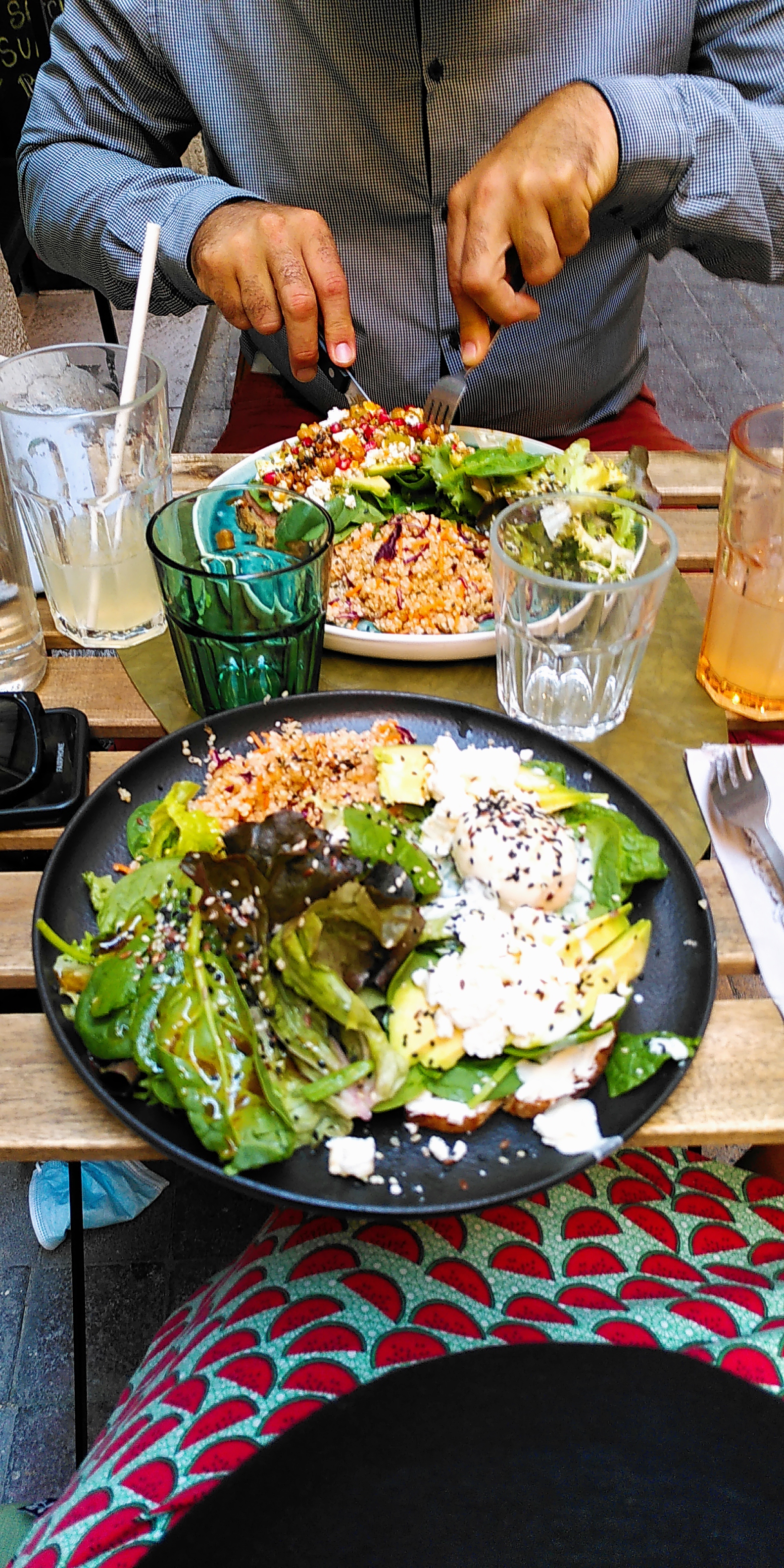 Super découverte en déambulant dans les petites rues de Montpellier,les salades repas sont copieuses et excellentes ,je ne met pas 5 étoiles car dans la carte des desserts ça mériterait qu'il y ait une salade de fruit ,ou un dessert plus léger que ce qui est proposé et qui serait plus dans l'optique du style de ce restaurant.