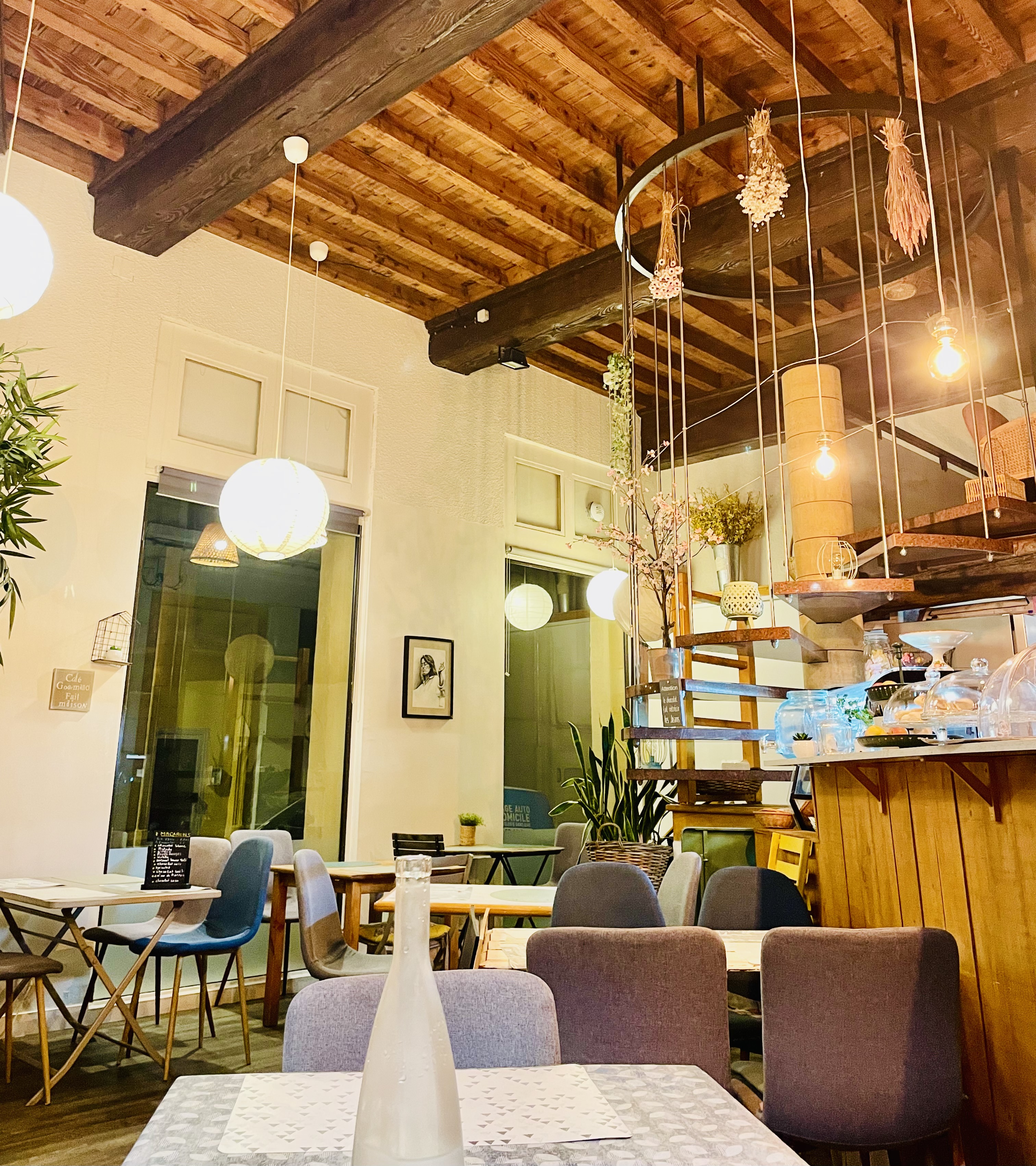 Ce sont justement les avis Google qui nous ont conduits à venir déjeuner ici un samedi, après notre passage sur Tarare. Et quelle surprise en effet ! En plus du décor sublime, entre récup et subtilité d'association de bons goûts, Leila vous accueille plus que chaleureusement : vous êtes chez elle comme chez vous ! Ajoutez à cela une cuisine raffinée, du plat jusqu'aux desserts en passant par les boissons. Si vous êtes chez elle comme chez vous, c'est aussi et surtout parce que tout est fait maison avec un ingrédient inégalable : de l'amour. Si vous avez faim de relations humaines et de gourmandises, vous vous dirigez au bon endroit ! En revanche, si vous avez en horreurs les mets savoureux, la déco chinée et les sourires à foison, alors fuyez 😉