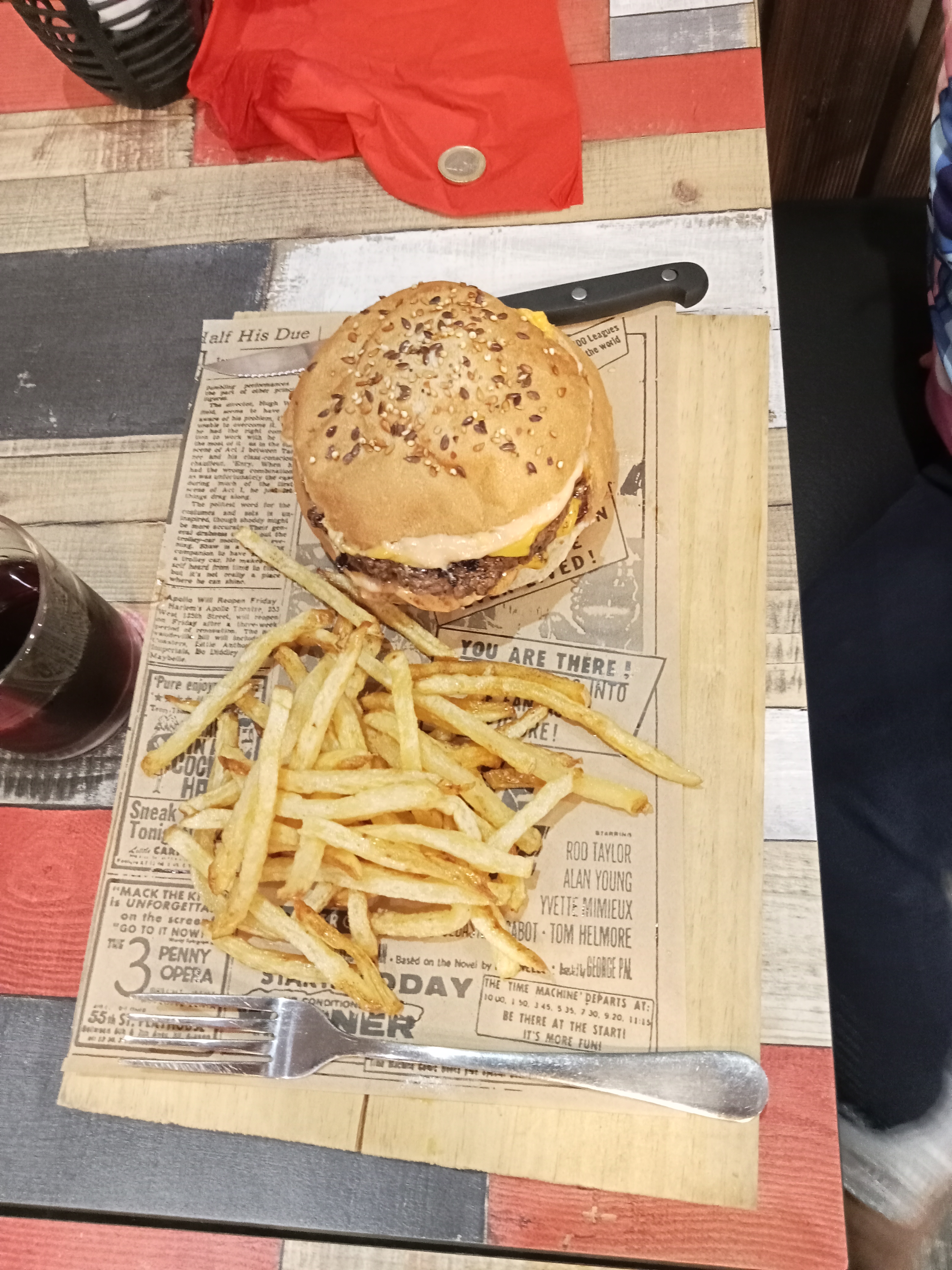Supers burger. Serveur très sympathique et rapide. Musique sympa. Frites maisons délicieuses !! Allez y les yeux fermés.