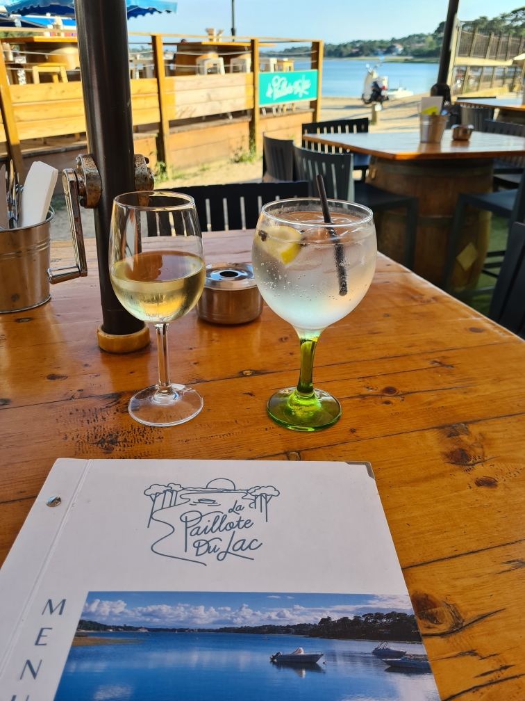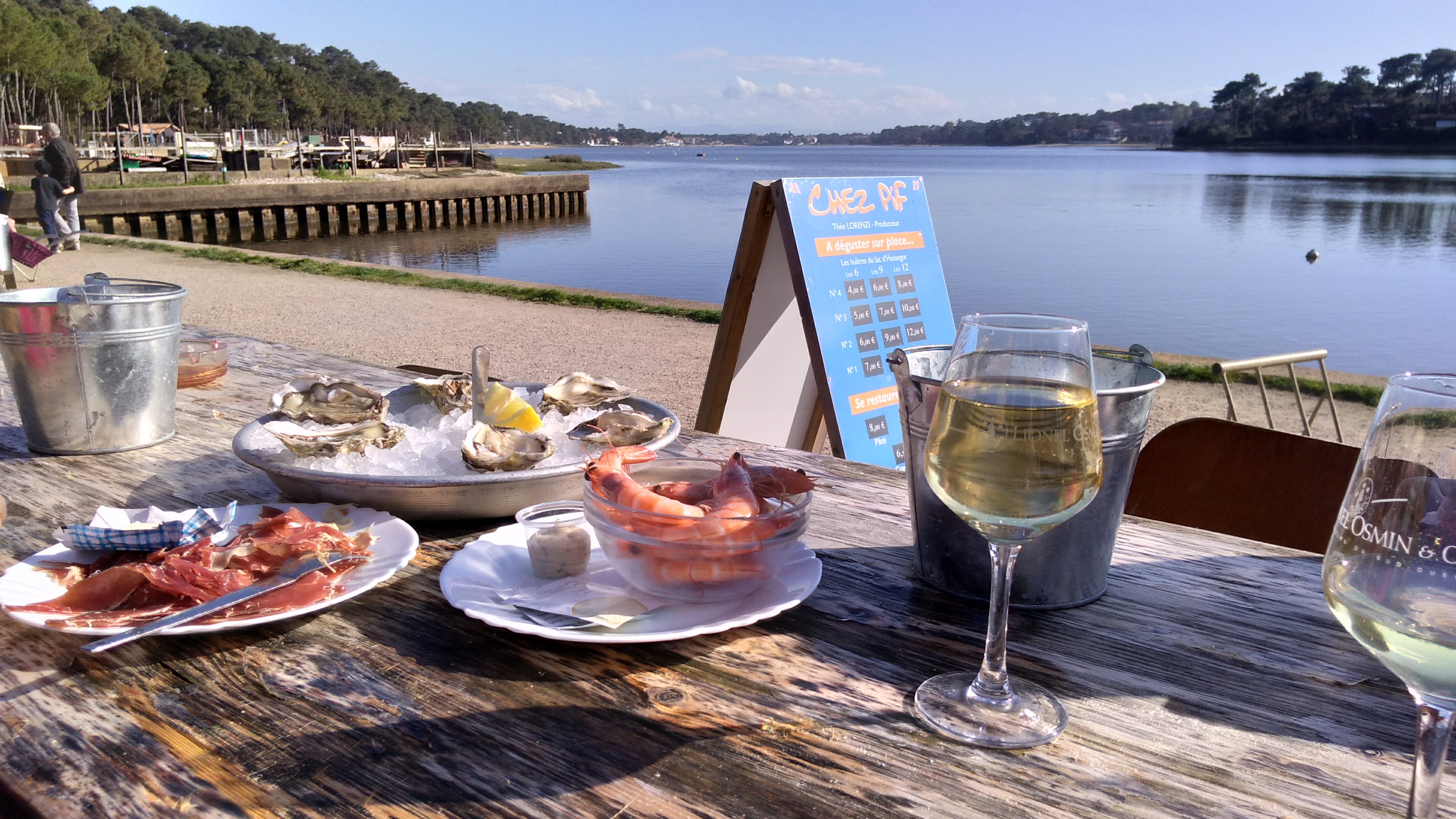 Moment de dégustation et de détente très agréable à mi parcours du lac en partant du centre ville de hossegor. Comptez entre 30 et 40 minutes à pied.