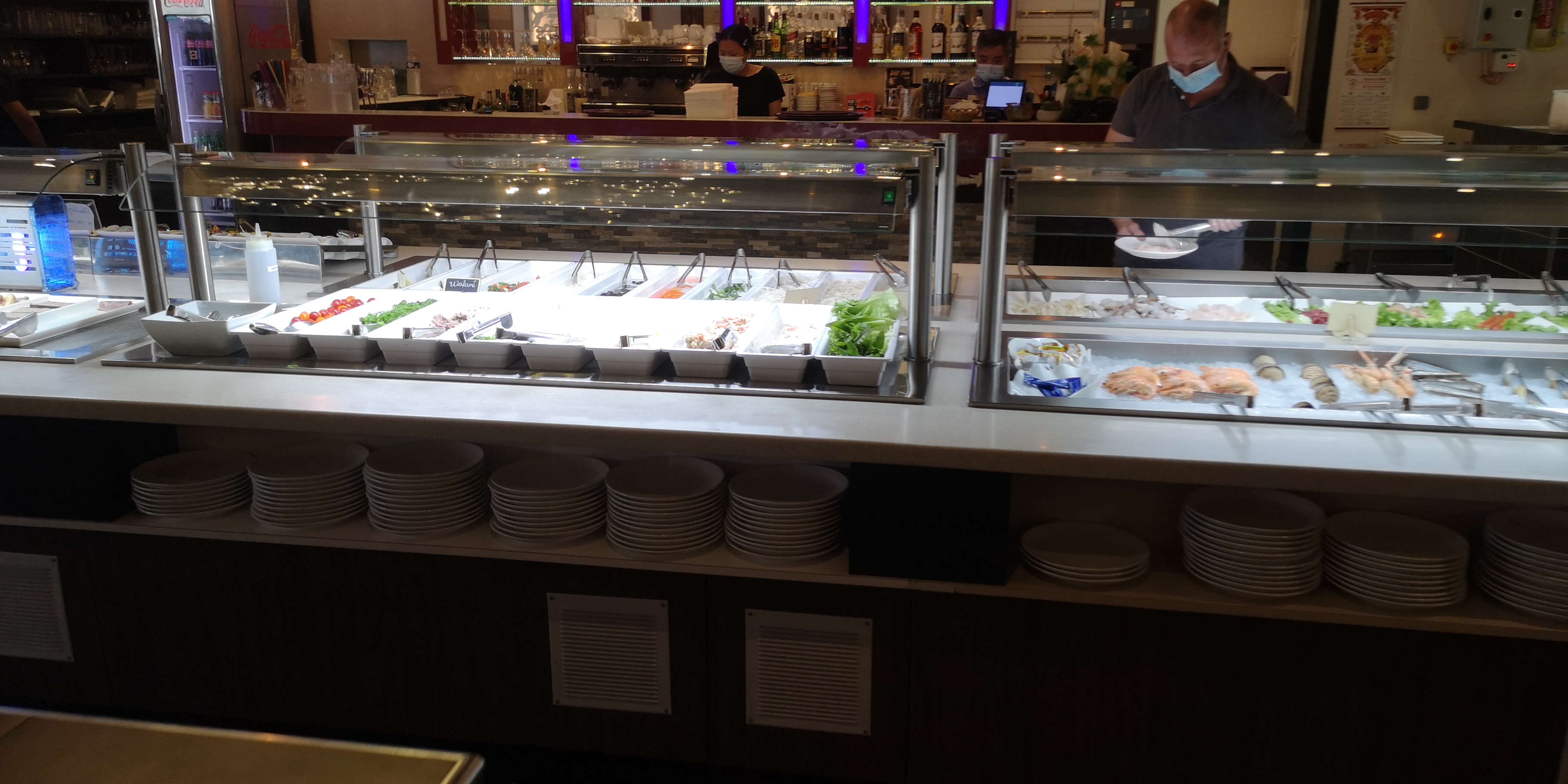 Personnel au top, salle propre. Les fruits de mer sont cuits juste à l eau sans aromate ça gâche le goût. Manque de sushi et makis à l ouverture. Dans l ensemble c est bon