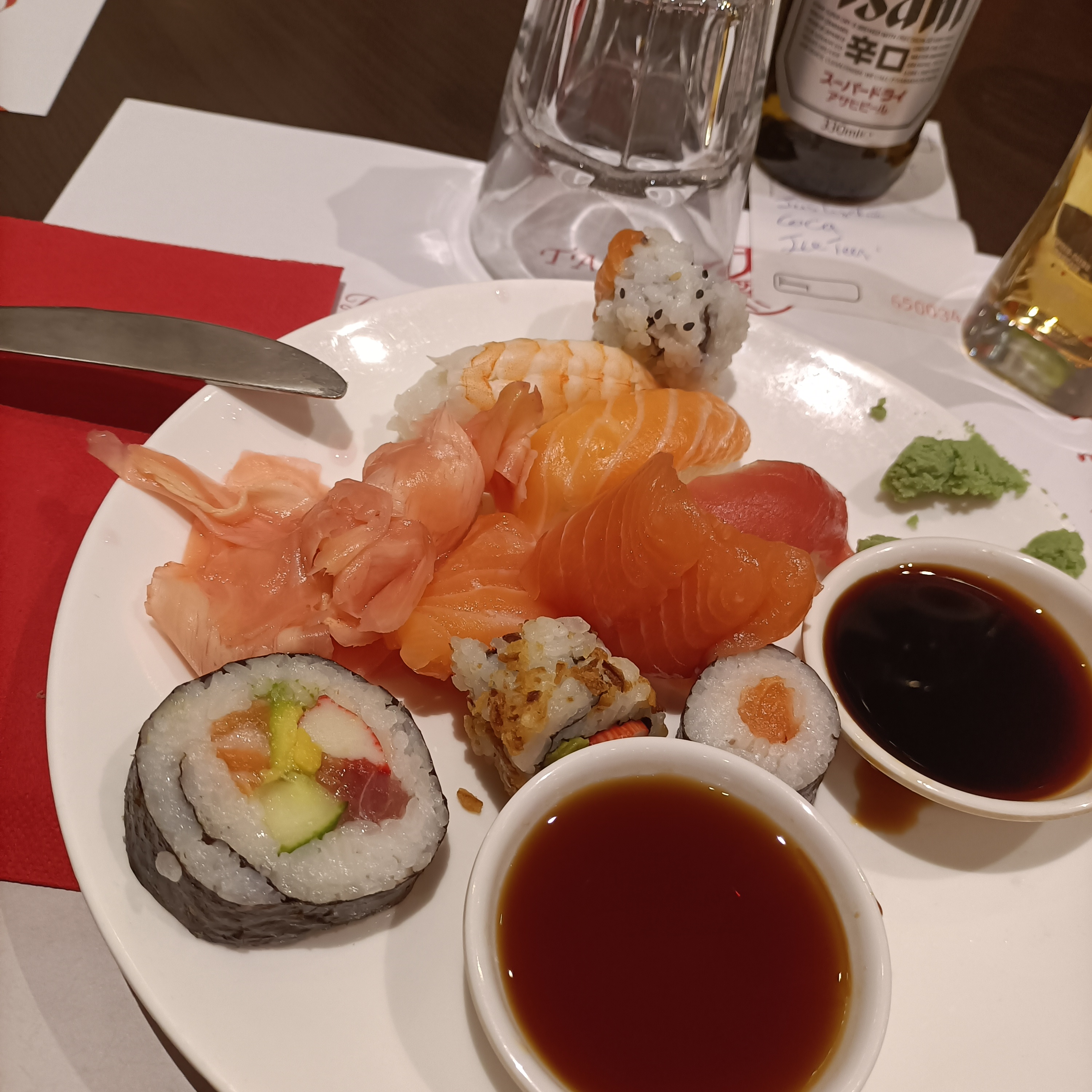 Prise de sushi a emporter, quantité normale pour le prix, qualité et saveurs pas extraordinaires mais satisfaisantes pour un restaurant non spécialisé là-dedans. Par contre la sauce soja à payer en supplément à 1€ la sauce c'est vraiment exagéré
