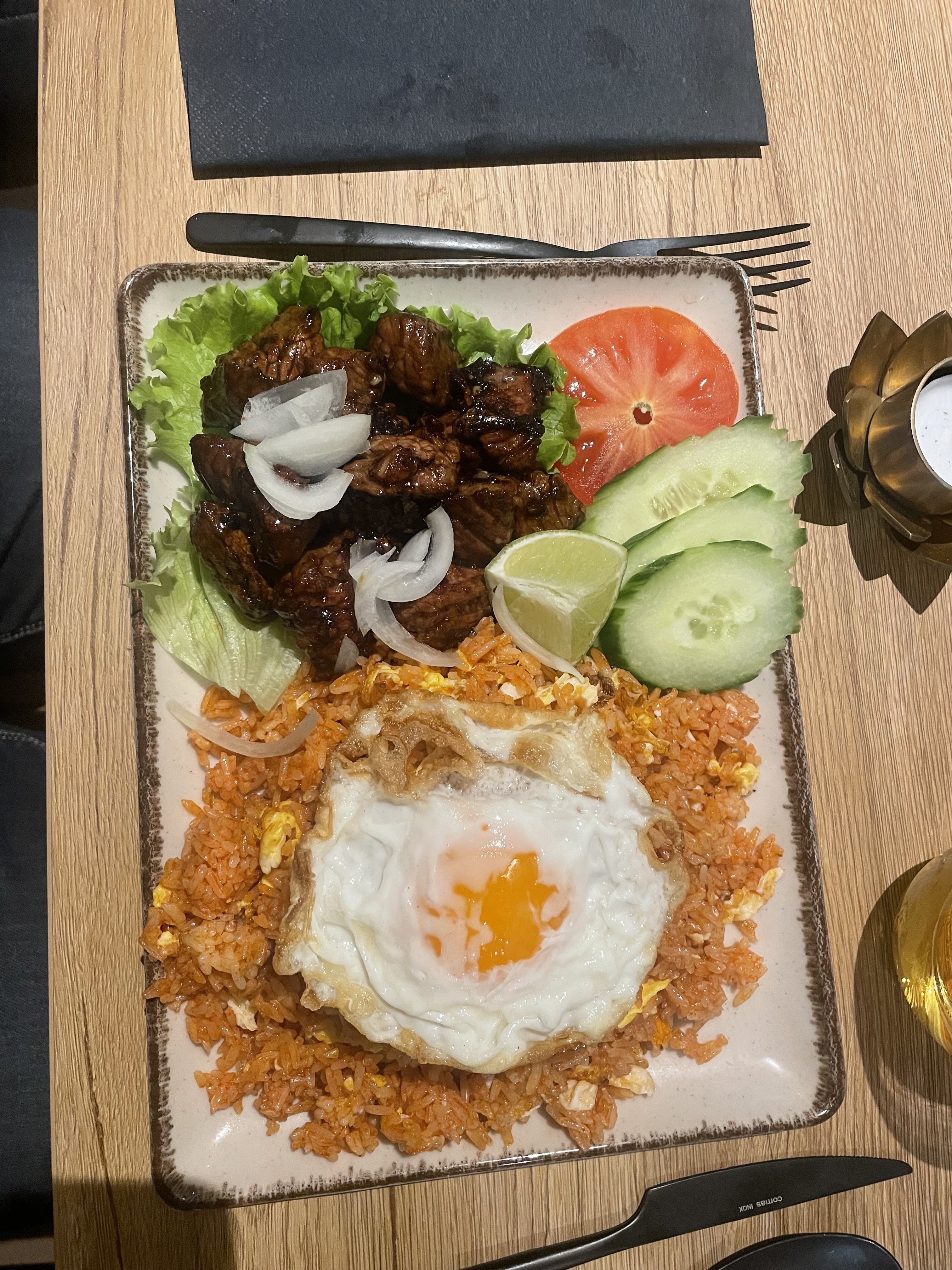 tout est bon et plutôt abondant (pad thaï et loklak) mention spéciale à la tendreté du boeuf du loklak! Le riz gluant a la mangue était délicieux malgré une mangue assez verte. nous recommandons cet endroit !