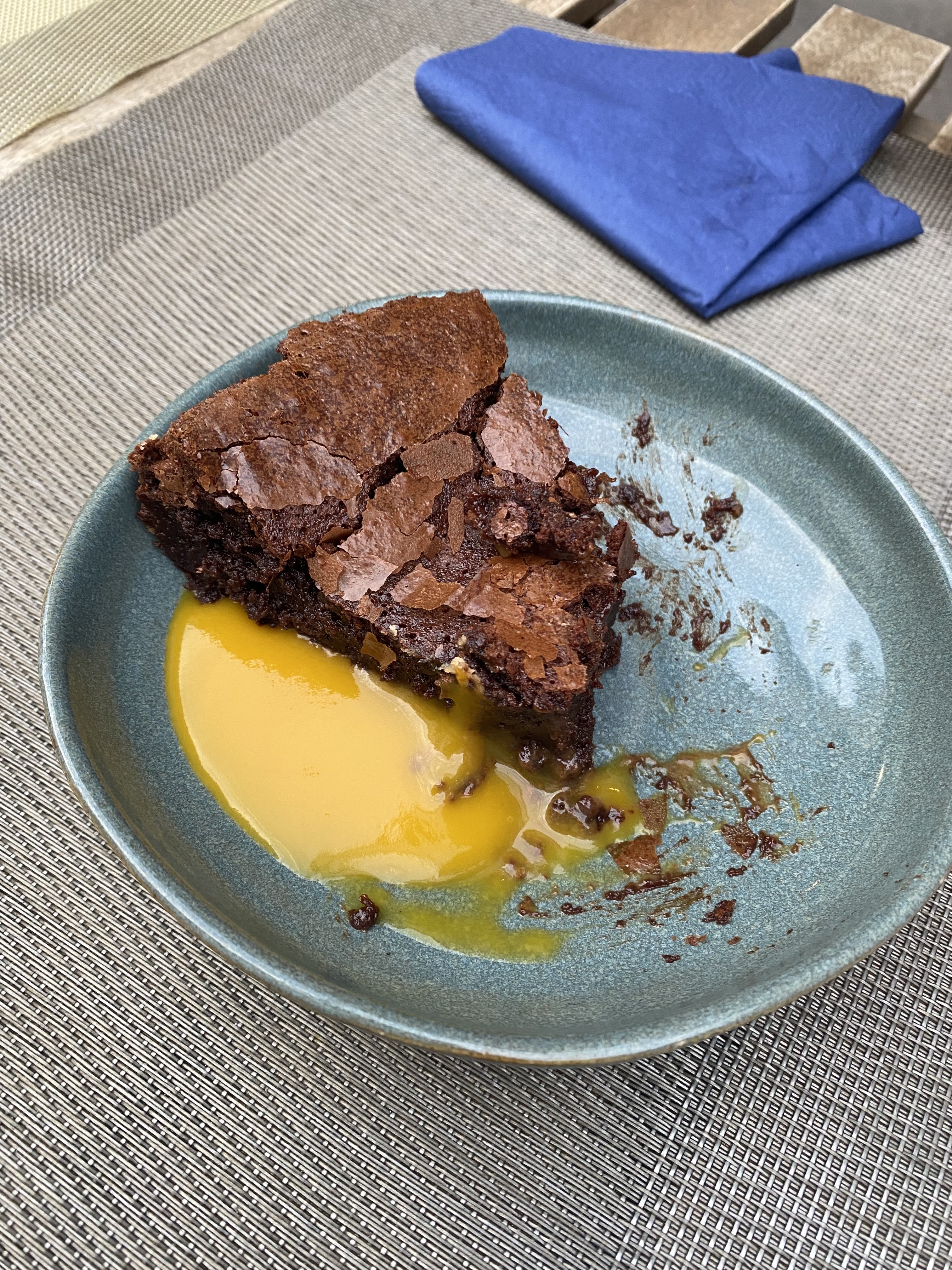 Nourriture vraiment bonne et gentillesse du propriétaire Une belle terrasse et du bon vin (Un incontournable, les desserts)