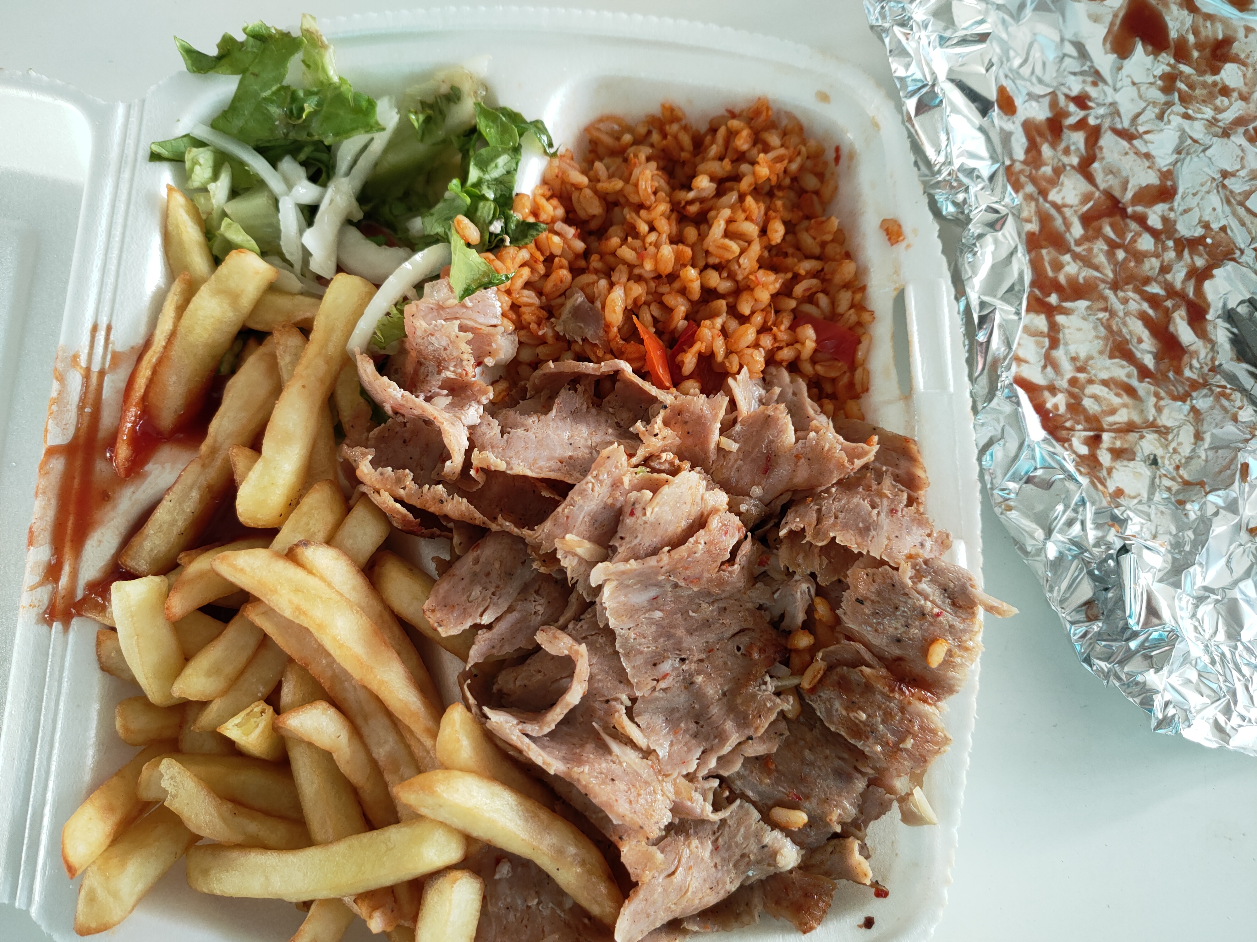 J’ai rarement mangé d’aussi bonnes frites dans un grec elle sont excellentes ! La viande était très bonnes, le seul bémols et que j’ai pris en pain tortillas, et la tortillas avait le goût de farine… Je recommanderais mais cette fois-ci en pain normal