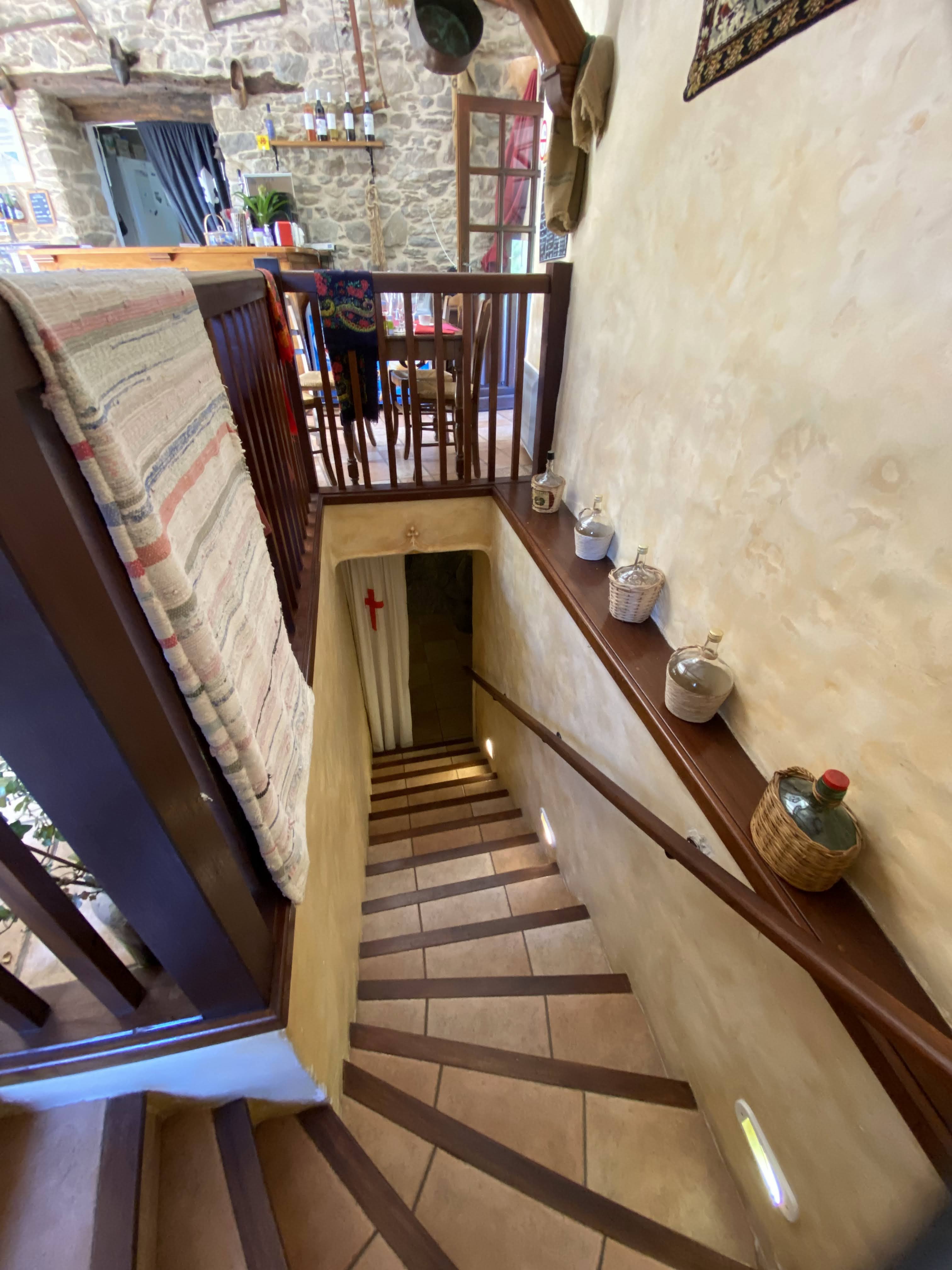 Dans un village médiéval typique et haut perché ! Accueil sympathique et bar à toutous offert par la maison porté sans rien demandé ....Par les temps qui courent, le moindre petit geste sympa est apprécié