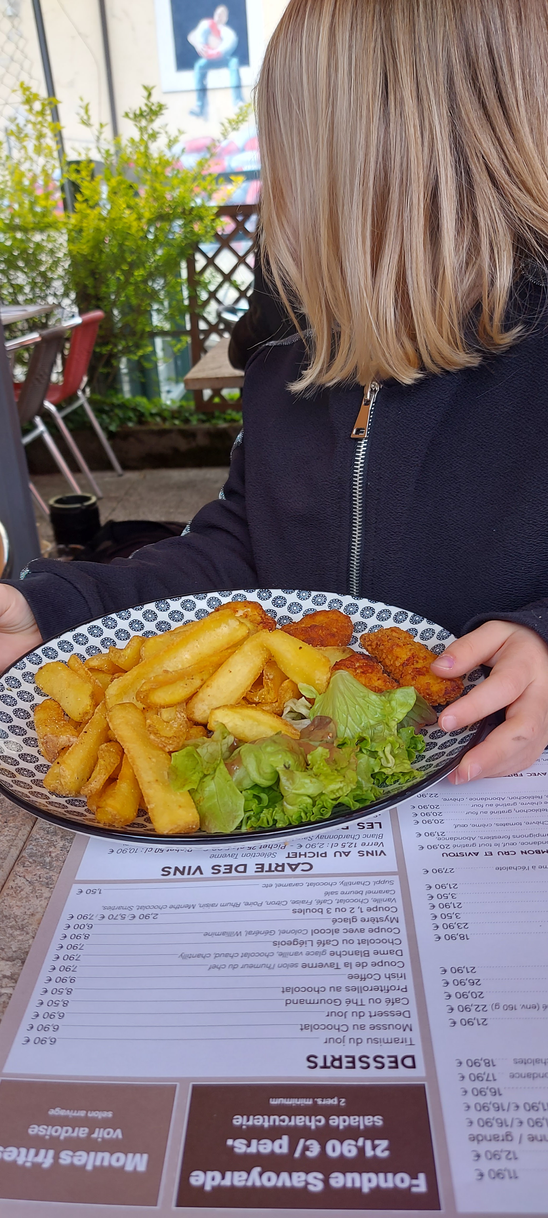 Bon produit j'ai pris la croûte savoyarde. Du goût avec un qui prix correspondant. Je vous le conseille. Mon épouse a pris une grosse salade St Jacques, saumon et crevettes très bon. Même les enfant on le droit au nugget avec des filet de poulet non reconstituer. Pas un attrape touriste.