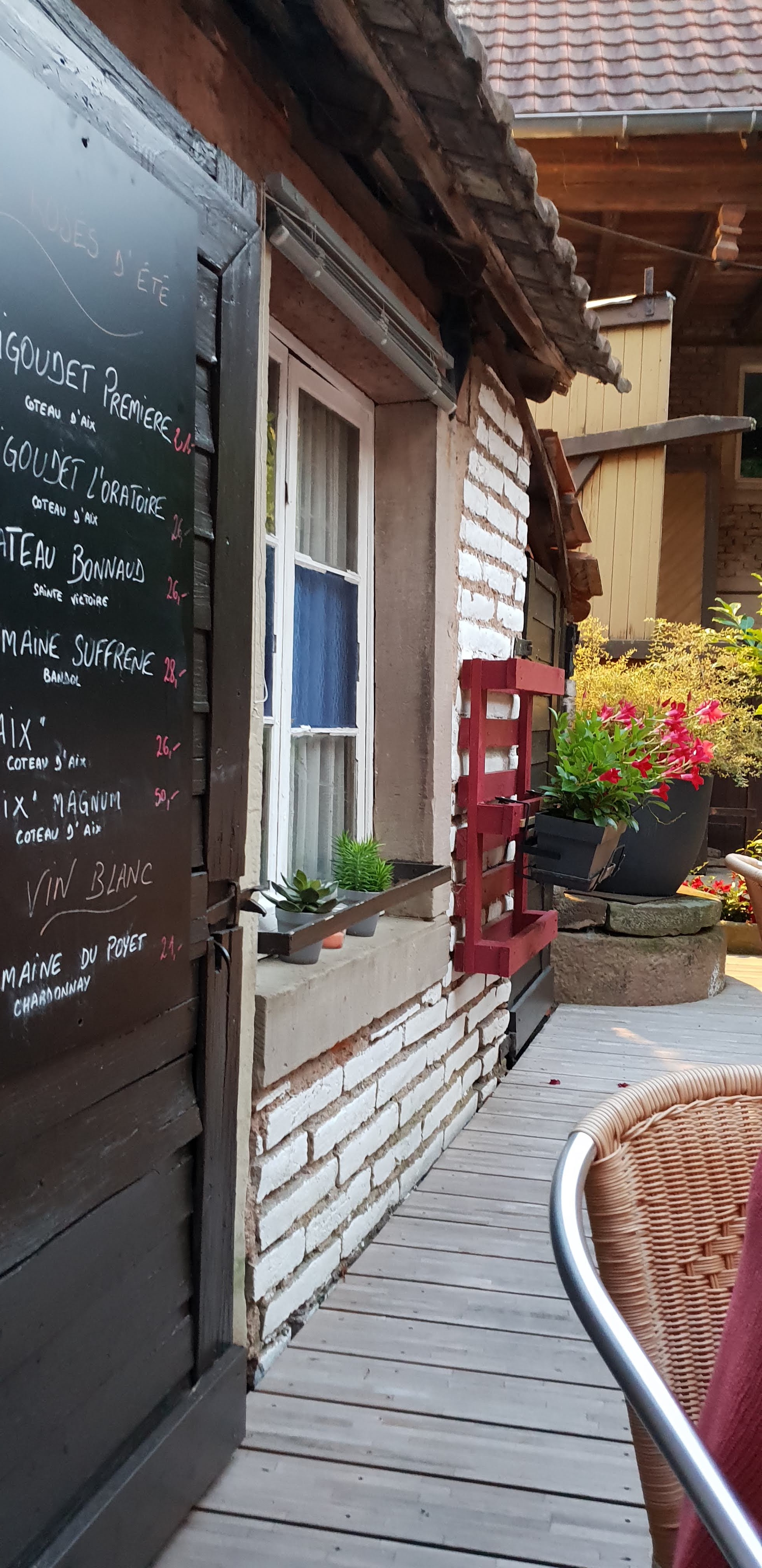 Terrasse d été très agréable. Venez dans ce restaurant uniquement pour les tartes flambées qui sont correctes. Les autres plats n ont que peu d intérêt : 14 euros le bibeleskase avec une gousse d ail coupée en 4 et de la ciboulette même pas ciselée. A la rigueur ne proposez rien d autre que les tartes.
