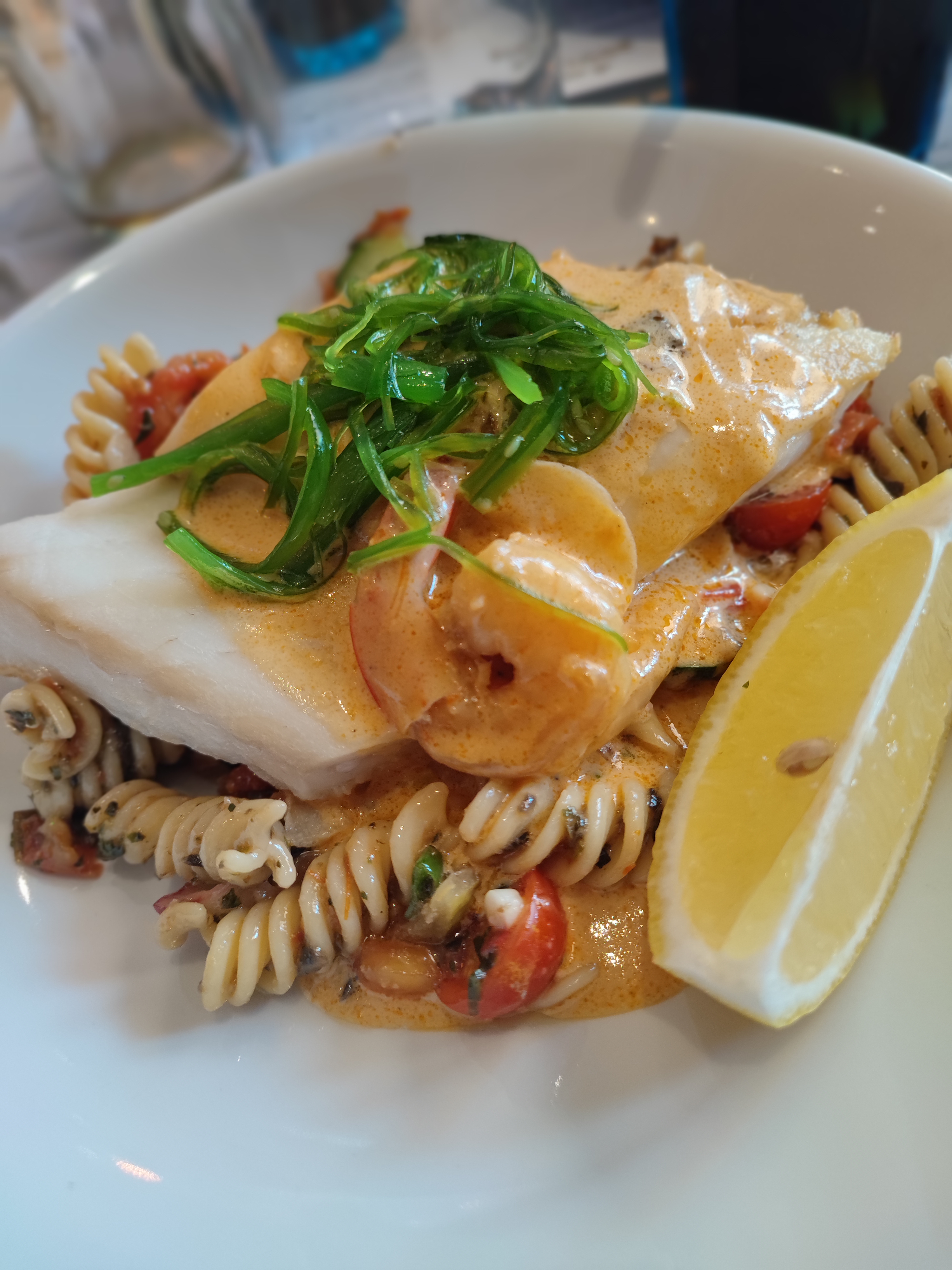 Plat du jour moyen saumon à la polenta et coco, saumon cuit parfaitement le seule bémols retrouvé une écaille et peau pas grillé dommage que le produit à étais gâché, j'aurai préféré manger mon saumon sur un tapie de légumes ou de une mousline de légumes ou une jardinière, J'ai regardé la carte leurs grillades à l'air pas mal , rien Que mon plate du jour et le café mon coûter 15,40 euro c'est cher pour ce que sais , je vous conseille de faire attention au piège de l'arnaque gastronomie.(Sa n'empêche pas que le personnels et sympathique )