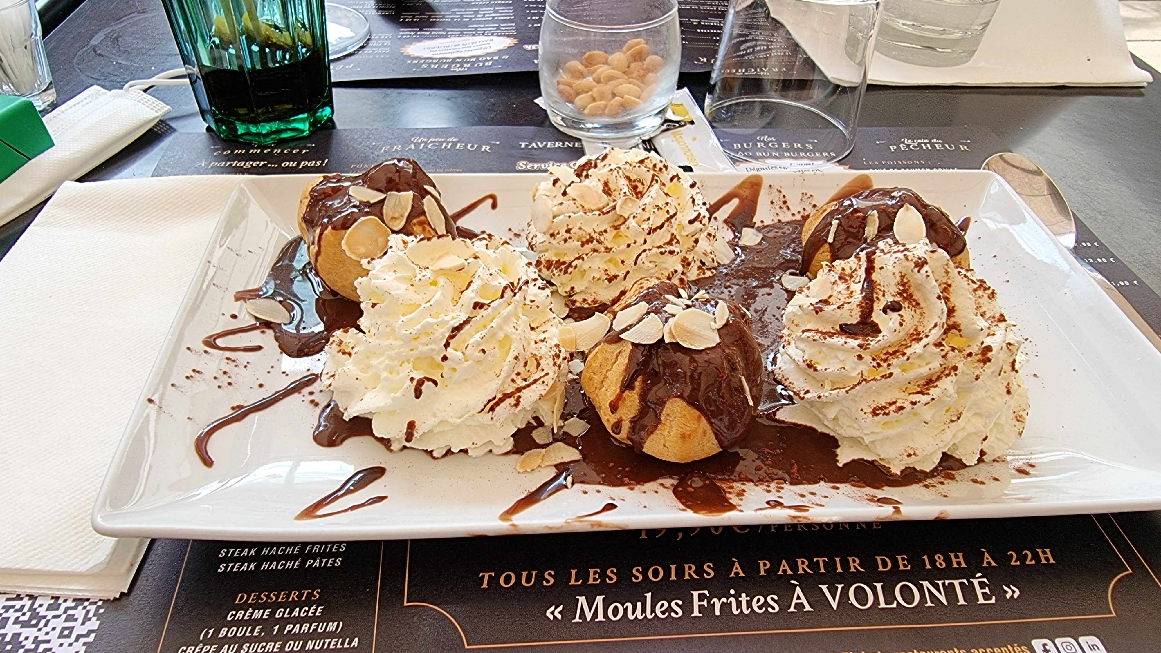 Les prix sont exorbitants ! 8 euros pour des profiteroles composés de 2 petits choux remplis de glace avec une chantilly en bombe et une sauce chocolat industrielle !!! 2 boules de glaces (creuses l!!!) 5 euros. Personnel pas accueillant!