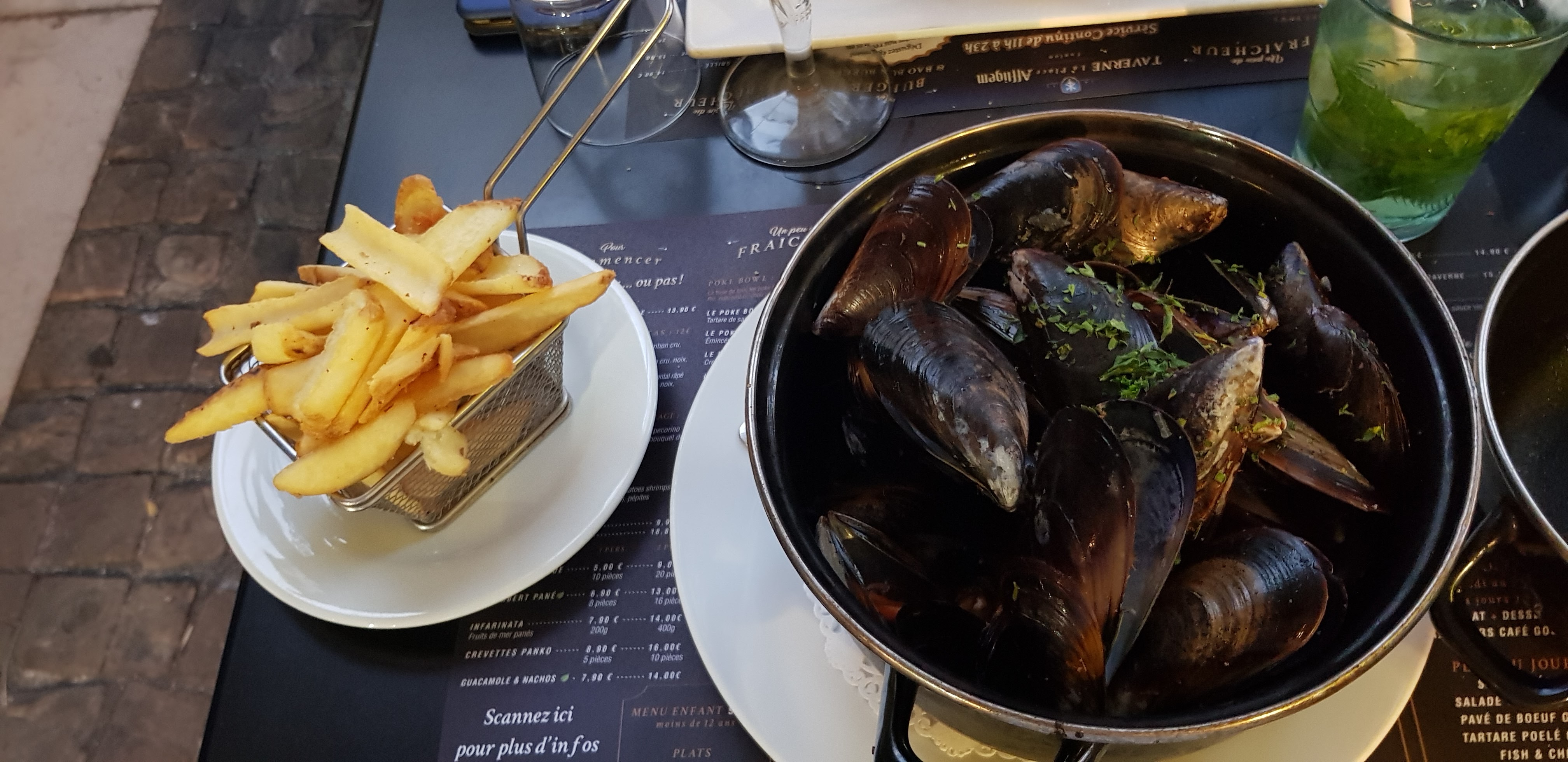 On ne recommande pas les moules marinières qui étaient douteuses et mal cuites, burger froid Après s'en être plains au lieu d'annuler le prix de la moule, ils ont préféré offrir un pauvre café à 2€ alors qu'on avait à peine touché aux moules