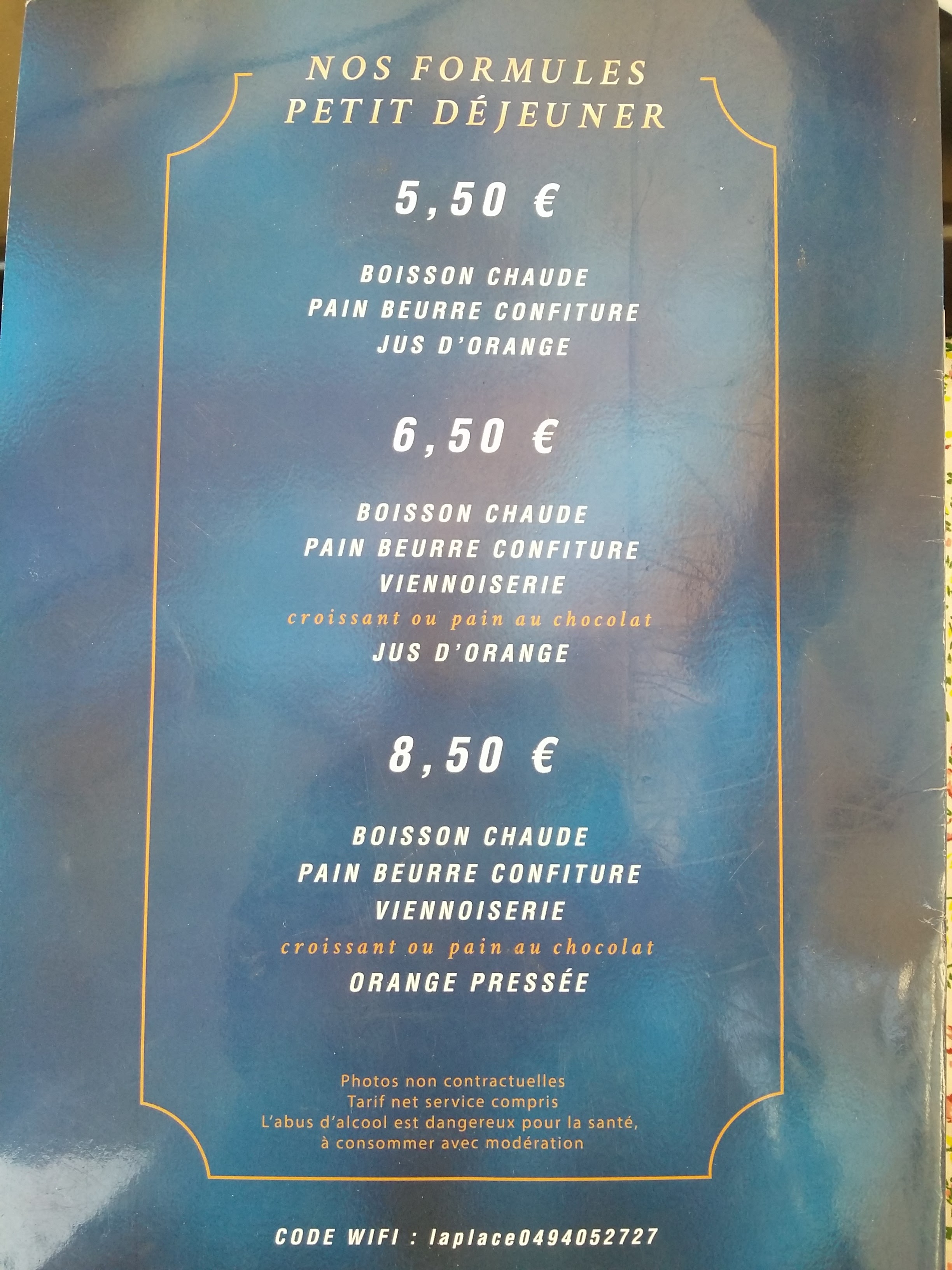 Je regrette de devoir réviser mon jugement. La Place est une très honnête brasserie qui donne satisfaction généralement pour ce qui est de la restauration au quotidien. Mais le gérant a voulu proposer un repas de Noël. En toute confiance, j'y ai invité ma famille. Je pense que nous n avons jamais mangé un si mauvais repas, même à LA PLACE, en temps ordinaire! Du plat principal à l'Omelette Norvégienne tout était immangeable! D ailleurs plusieurs critiques se sont exprimées à la caisse...