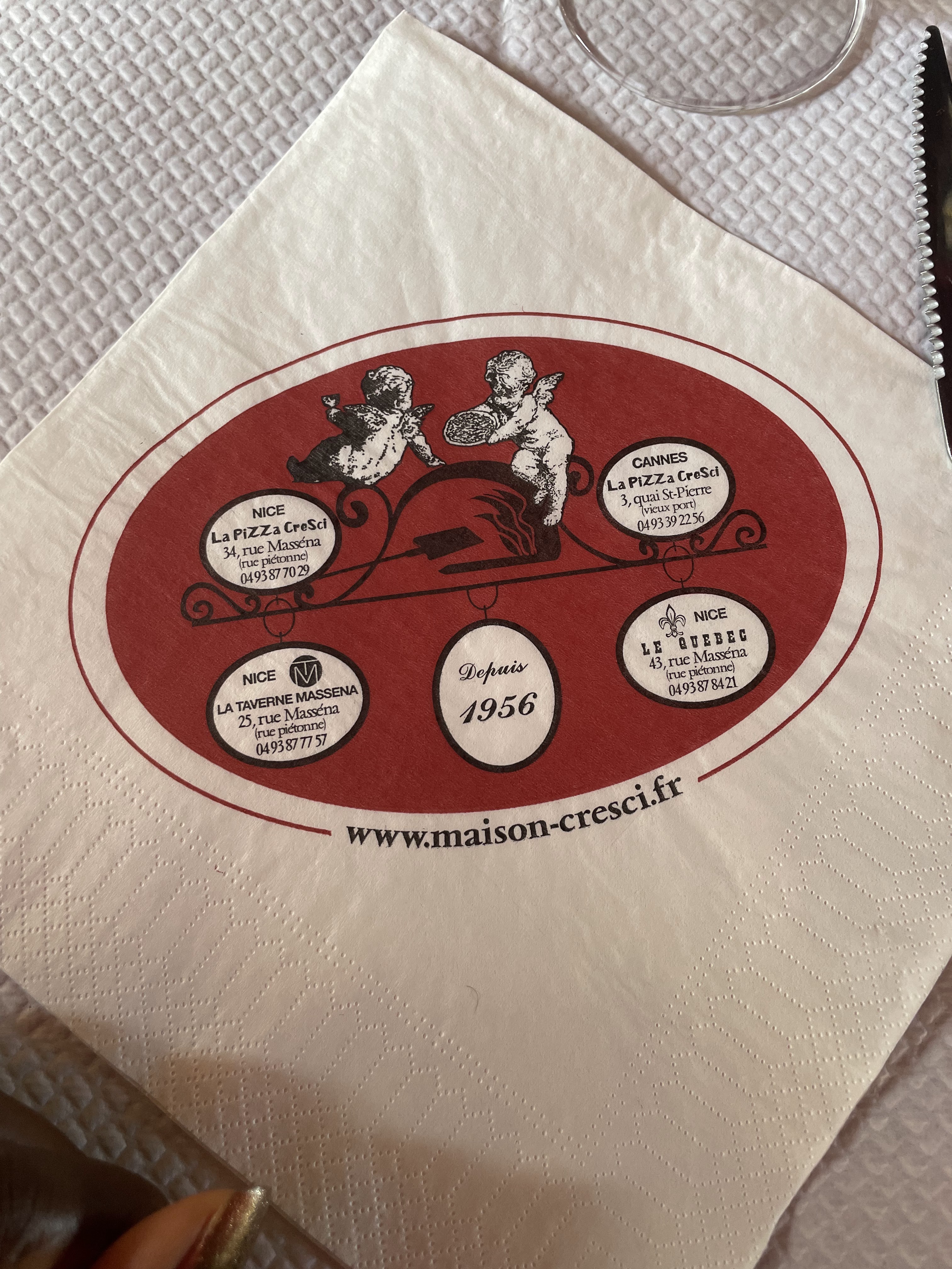 Rien à dire sur les plats; pizzas et assiette niçoises excellentes ; bémol sur le service en raison de l oubli de l entrée, des escargots, servis simultanément avec le plat, je ne comprends tjs pas et ça n a aucunement perturbé notre serveur malgré nos remarques. Pas de chance avec la maison cresci en ce moment; mais cela n enlève rien à la qualité de leurs plats.