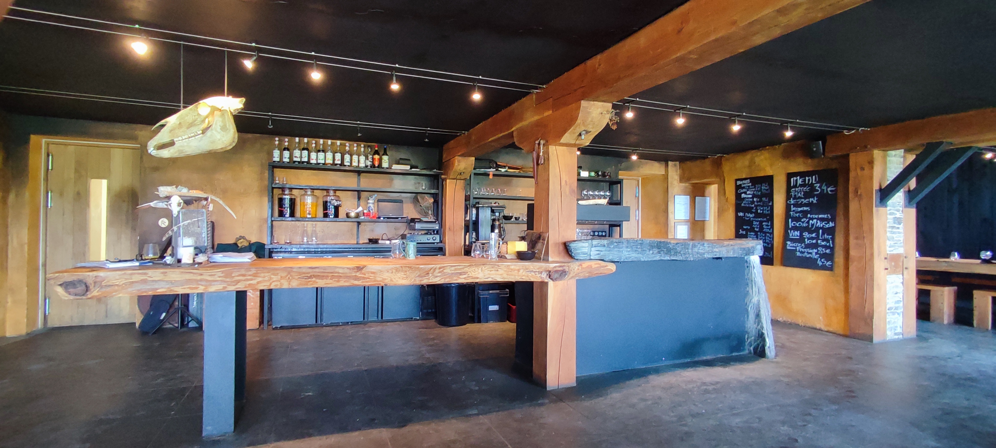 Si vous avez envie de vivre une expérience culinaire hors du commun, venez ici. Après avoir traversé une forêt brumeuse et inquiétante à souhait vous arrivez dans cet endroit reculé. Un énorme chien super gentil vous accueille et vous conduit a la porte. S ouvre devant vous un espace un peu imaginé par Servais et le patron vous accueille. Indescriptible il faut y aller. La cuisine est inventive, savoureuse et surprenante. Tout est servi dans des plats séparés, vous mangez ce que vous voulez au rythme que vous voulez. Menu unique mais tellement varié que vous ne pouvez qu apprécier. Viande servie à part et cerise sur le gâteau on vous ressert si vous avez encore faim. C est tout simplement extraordinaire comme cuisine et comme ambiance. C est bon, sans chichi et une atmosphère incroyable, le tout a prix plus que raisonnable, 170 euros à 4 avec apéro, eu et 1,5 l de vin. Attention pas de paiement par carte Un voyage culinaire extraordinaire 🙃