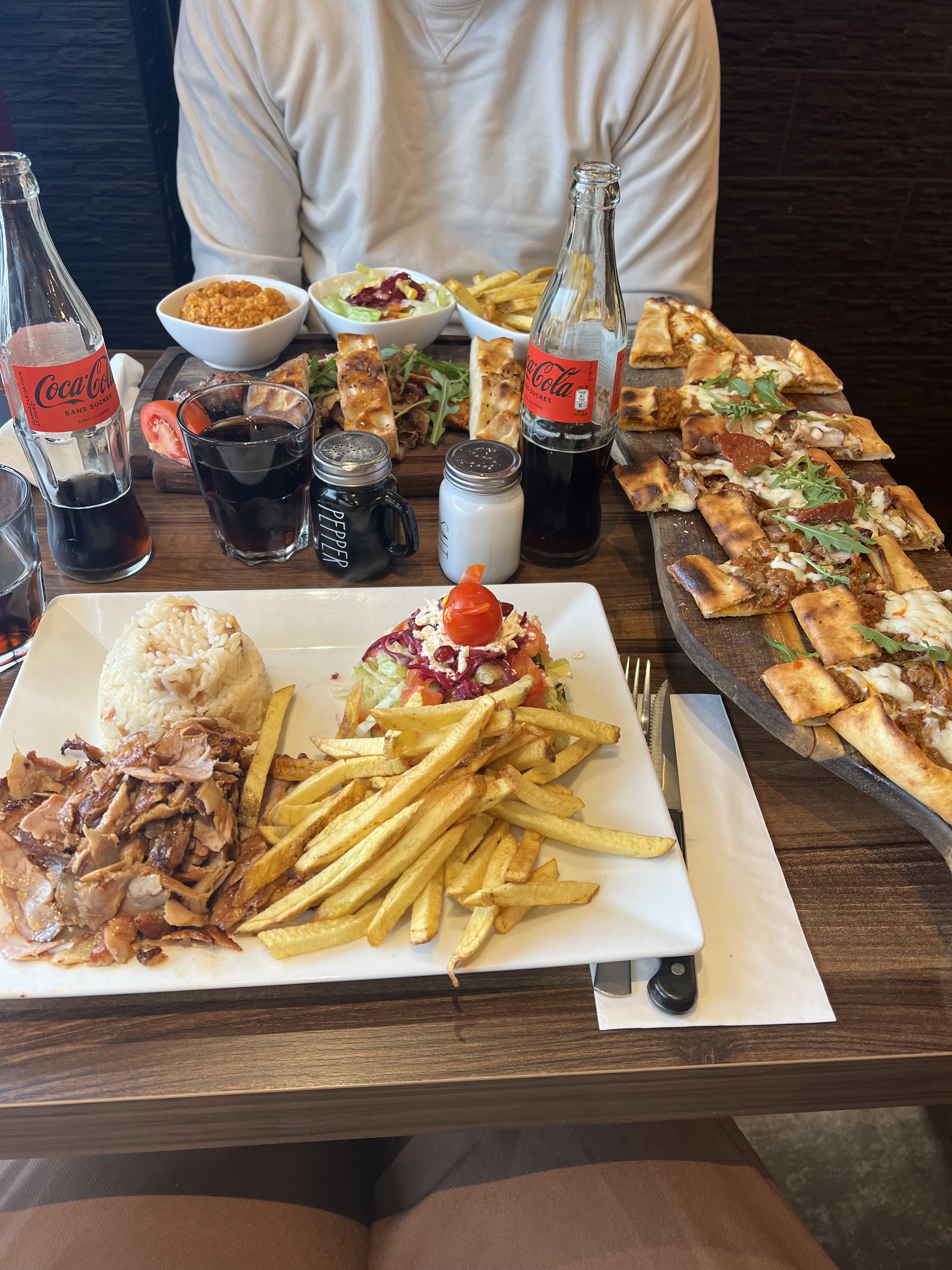 Malheureusement pas à la hauteur du prix, l’entrée plus tôt correct, mis à part la petite salade qui été douteuse, le plat de résistance (assiette mixte) décevant , repas pas copieux du tout, (on parle d’une assiette mixte) il manquais la viande de kebab obliger de demander ou est la viande de kebab, si je n’avait pas demander ou été la viande de kebab il aurait fait comme ci de rien était, nourriture servit tiède donc au bout de 7-8min complètement froides, frites trop sec, blé douteux (gluant farouchement), j’ai déjà manger des assiettes mixte ailleurs et c’était beaucoup plus copieux, 20,90€ pour un repas pareil.. carte du restaurant sur le site internet et carte sur place qui ne sont pas les mêmes, la glace du dessert n’avait aucun goût, on sait même demander si c’était pas périmé. Résultat des courses vous l’aurais deviner, réveil assez agité, mal de ventre, nausées, du mal à ravaler sa salive.. dommage.. Malgré tout endroit chaleureux bonne ambiance serveuse qui fait sont mieux. Ceci dit, je partage l’avis de moi et de ma compagne. Je ne dénigre en aucun cas ce jolie restaurant. Malheureusement pour nous, nous avons été déçu de la nourriture sur place. Peut être que vous en n’y allant vous serez conquis par la qualité du repas proposer. Malheureusement pour nous il n’y aura aucune recommandation et sa sera 1 étoile même si honnêtement c’était zéro (cette note concerne la nourriture). L’ambiance et personnel 5etoiles). Cordialement !