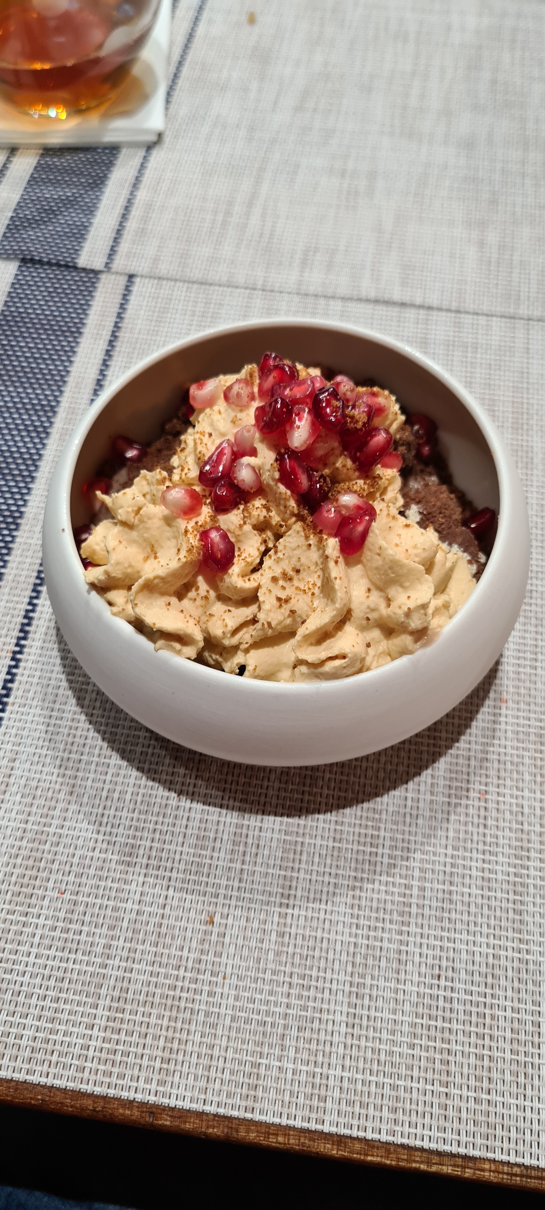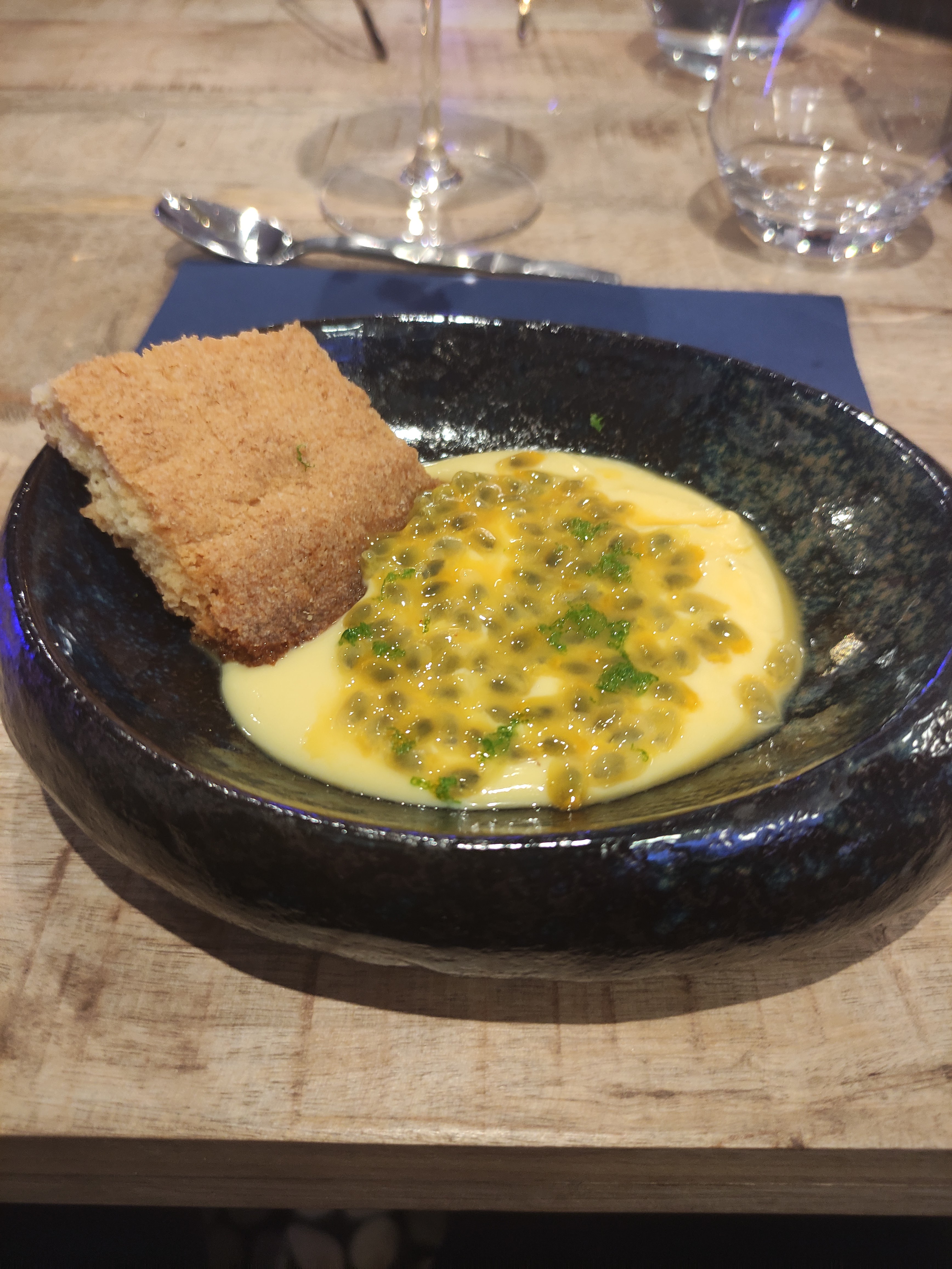 Assez déçu, le plat très bien....Mais le dessert franchement 👎. Le moelleux au chocolat très décevant, ne ressemblait pas à un moelleux plus à un morceau de caoutchouc avec un gout de cramé. Mon mari a pris un dessert fruit de la passion, on aurait plutôt dit une crème trop citronné en guise de fruits de la passion que....les pépins. Et on a payé plein pot 10euros et 9,50 le dessert sans prise en compte de notre déception de vive voix au serveur.