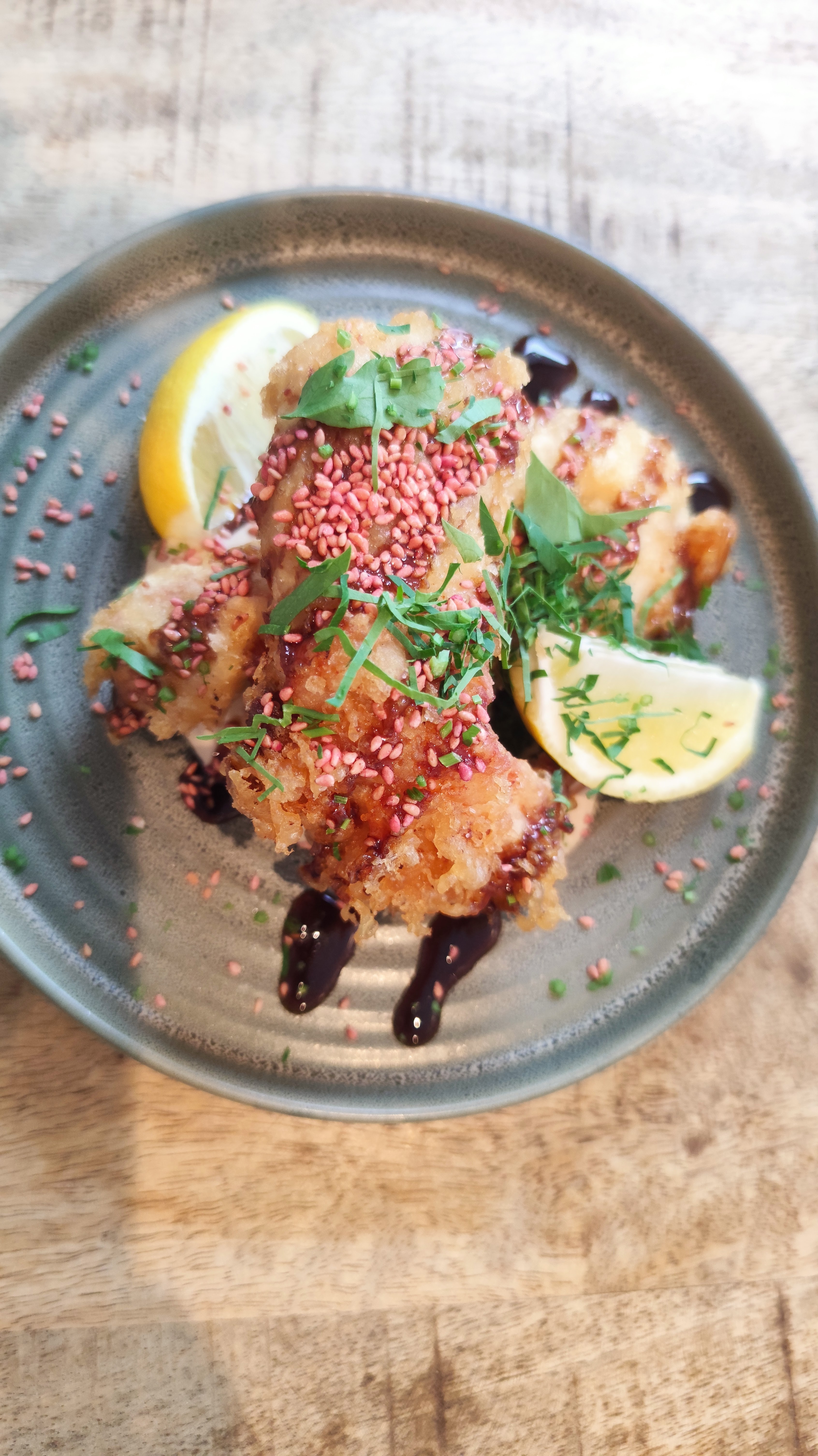 Une expérience culinaire un peu décevante, malgré le service très sympathique. On s'attendait à ce que le concept de fusion japonais soit plus surprenant. Les aubergines sucrées sont des gardes, elles étaient délicieuses. Les crêpes japonaises étaient plutôt fades et le plat de bœuf n'était pas tout à fait équilibré en termes de saveurs. Le poulet frit était bon. Les langoustines étaient légèrement trop cuites. Une expérience mitigée qui bénéficierait de quelques améliorations, il y a du potentiel pour quelque chose d'intéressant.