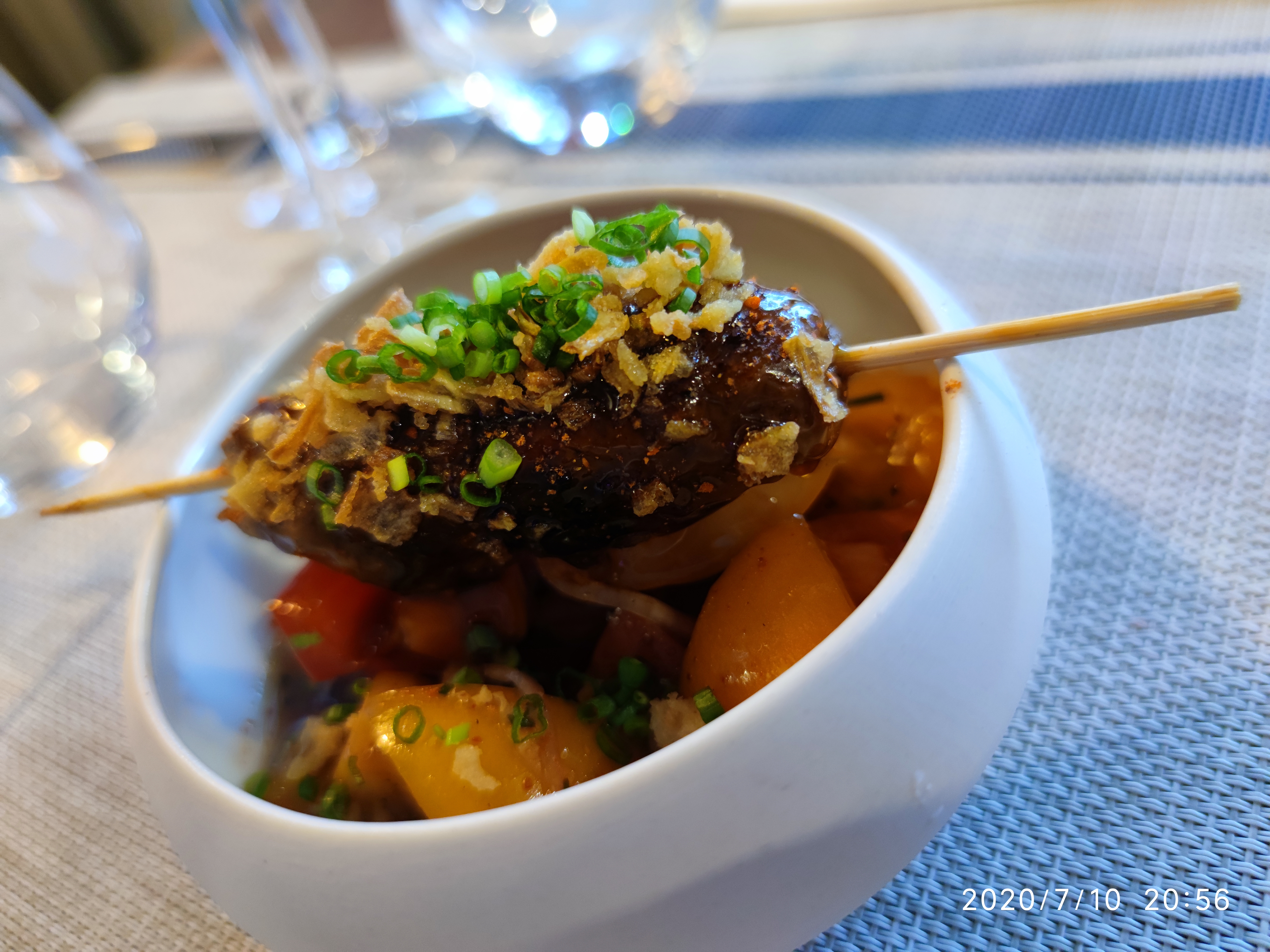 Ma meilleure expérience de restauration : première fois de ma vie que je goûte au homard après avoir commencé par un tataki de boeuf. Assiettes raffinées, hautes en couleurs et savoureuses, équilibrées, surprenantes, un voyage pour les papilles. Un accueil aux petits oignons, toujours bienveillant, soucieux du bien être des convives. En fond musical, le thème d’un Miyasaki… tout est dit. J’en ai pleuré, là aussi pour la première fois de ma vie. Vraiment MERCI