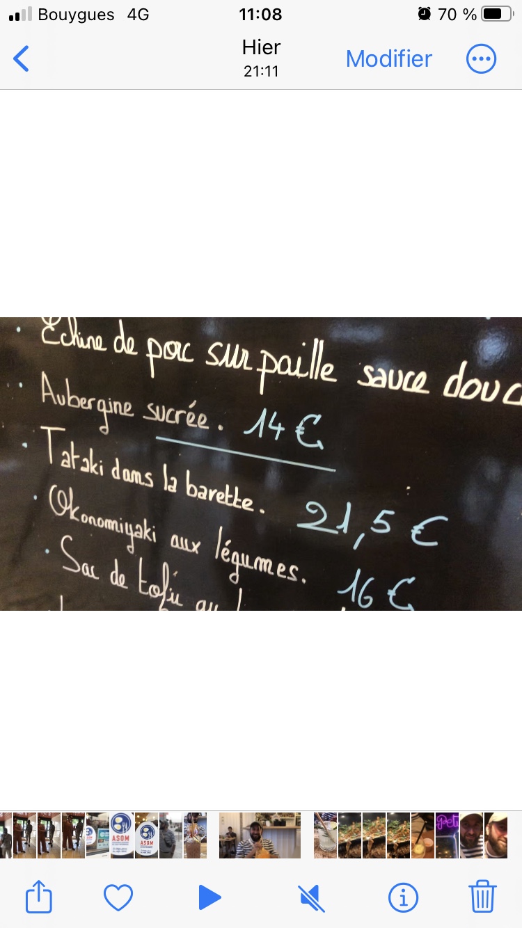 Une cuisine incroyable, même si un Okanamiyaki n’a pas beaucoup de liens avec la Bretagne. Dommage que le service n’est pas été à la hauteur des plats proposés. Deux heures d’attentes pour être servi. Pas beaucoup de choix à la carte. Félicitions aux chefs pour la créativité dans les assiettes.