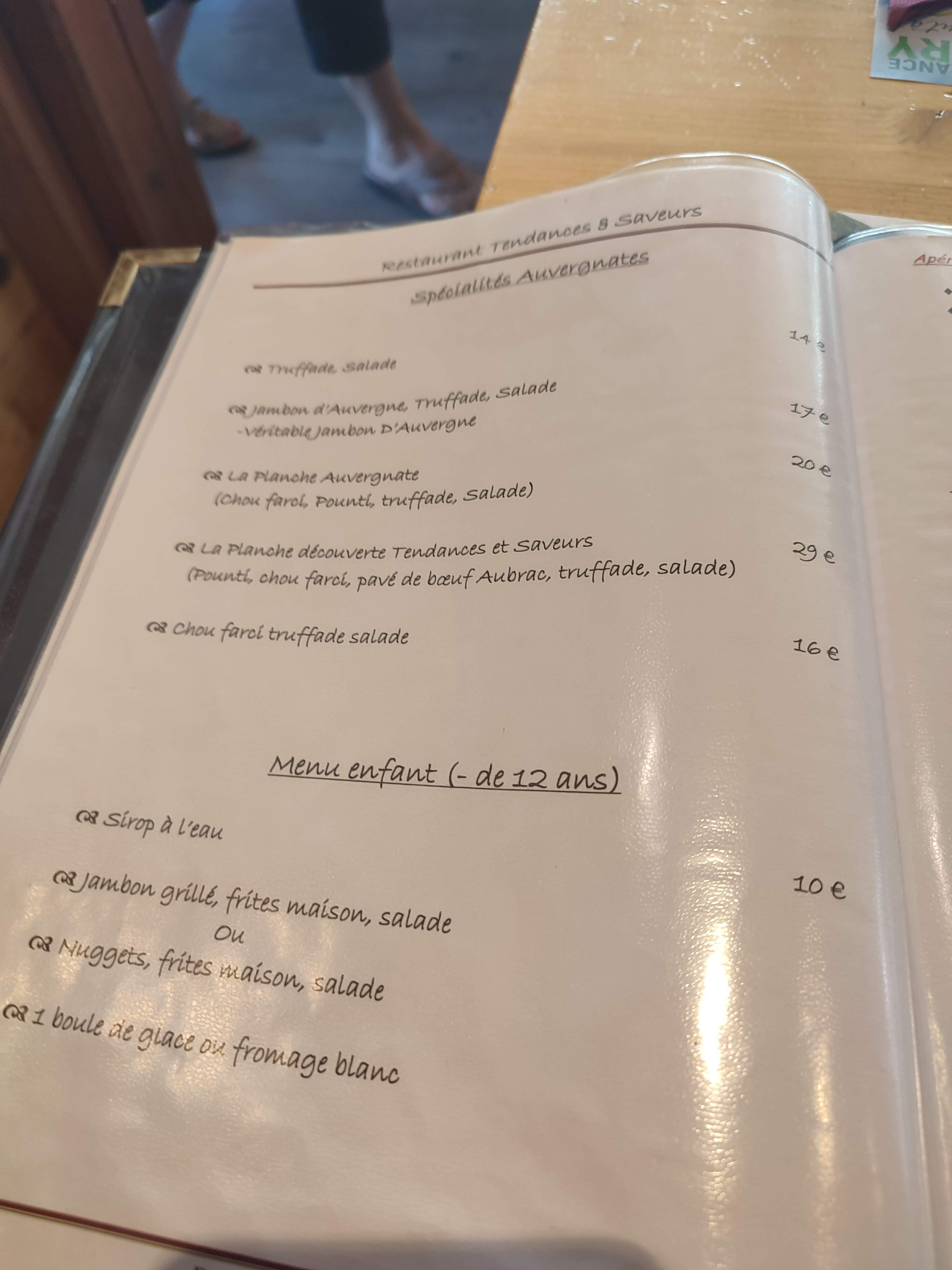 Le nom de l'enseigne est attractif et c'est bien le pb. Rien de bien tendance puisque ce sont des plat traditionnels auvergnats. Pour les saveurs, je pense qu'ils ne savent pas ce que c'est. L'accueil est fait par la patronne qui est 1 peu sèche et brute ds ses démarches. Les serveuses sont un peu rustres et s'empressent de débarrasser dès que l'on pose la fourchette! Les toilettes sont au sous dol. Froids, et inondés. Le sol tt mouillé le wc et l'urinoir sont ds la meme piece, avec le lavabo. Non je deconseille! 50€ pour des plats truffade et salade jambon...