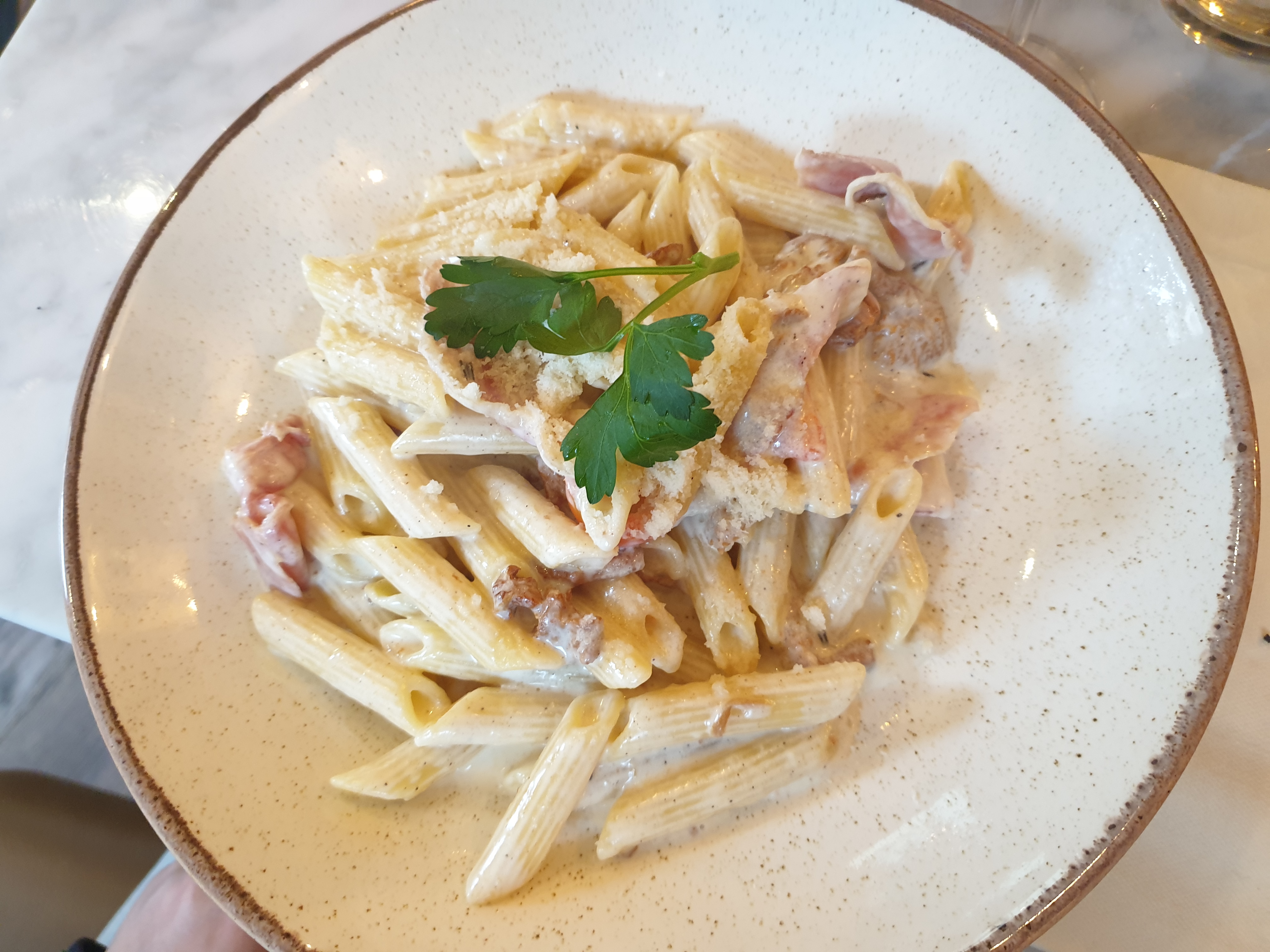 On a apprécié l’ambiance intimiste du restaurant, la qualité du service et de la cuisine. On a testé la burrata en entrée (à partager ☺️) puis les pâtes à la carbonata (avec et sans truffe). Tout était très bon !