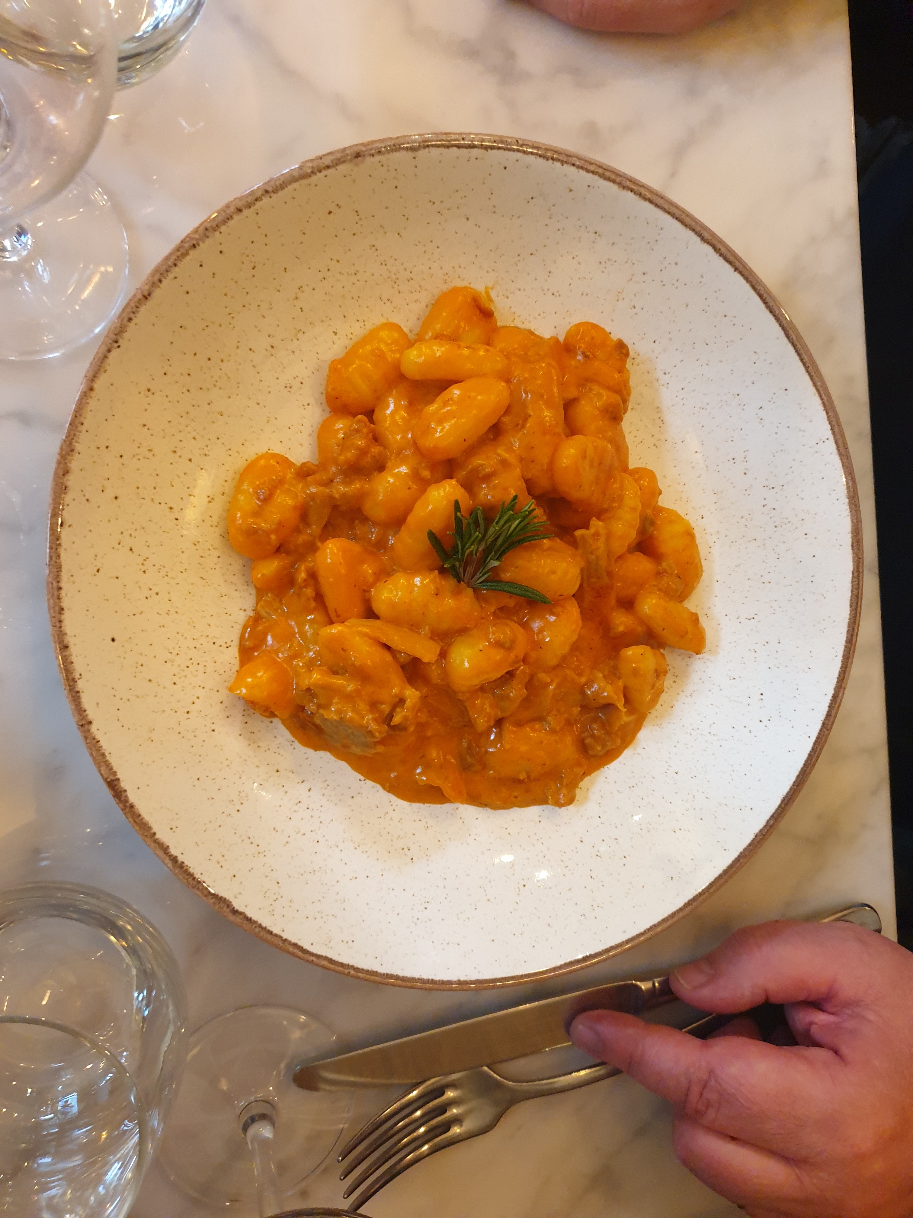 Une expérience plutôt bonne dans cette adresse italienne. Allez y pour le cadre chaleureux, le service sympathique et attentif, leur carte courte avec une dizaine de plats, on ne s'y perd pas c'est appréciable. En plus il y a des options végétariennes ! En revanche ma déception fut le manque de saveur des gnocchis, est-ce du fait maison? C'est le point majeur qui me fait pencher pour 3 étoiles plutôt que 4, ainsi que les prix qui sont assez élevés. Disons que nous mangeons correctement mais que l'on ne s'y régale pas, et pour le prix c'est dommage.