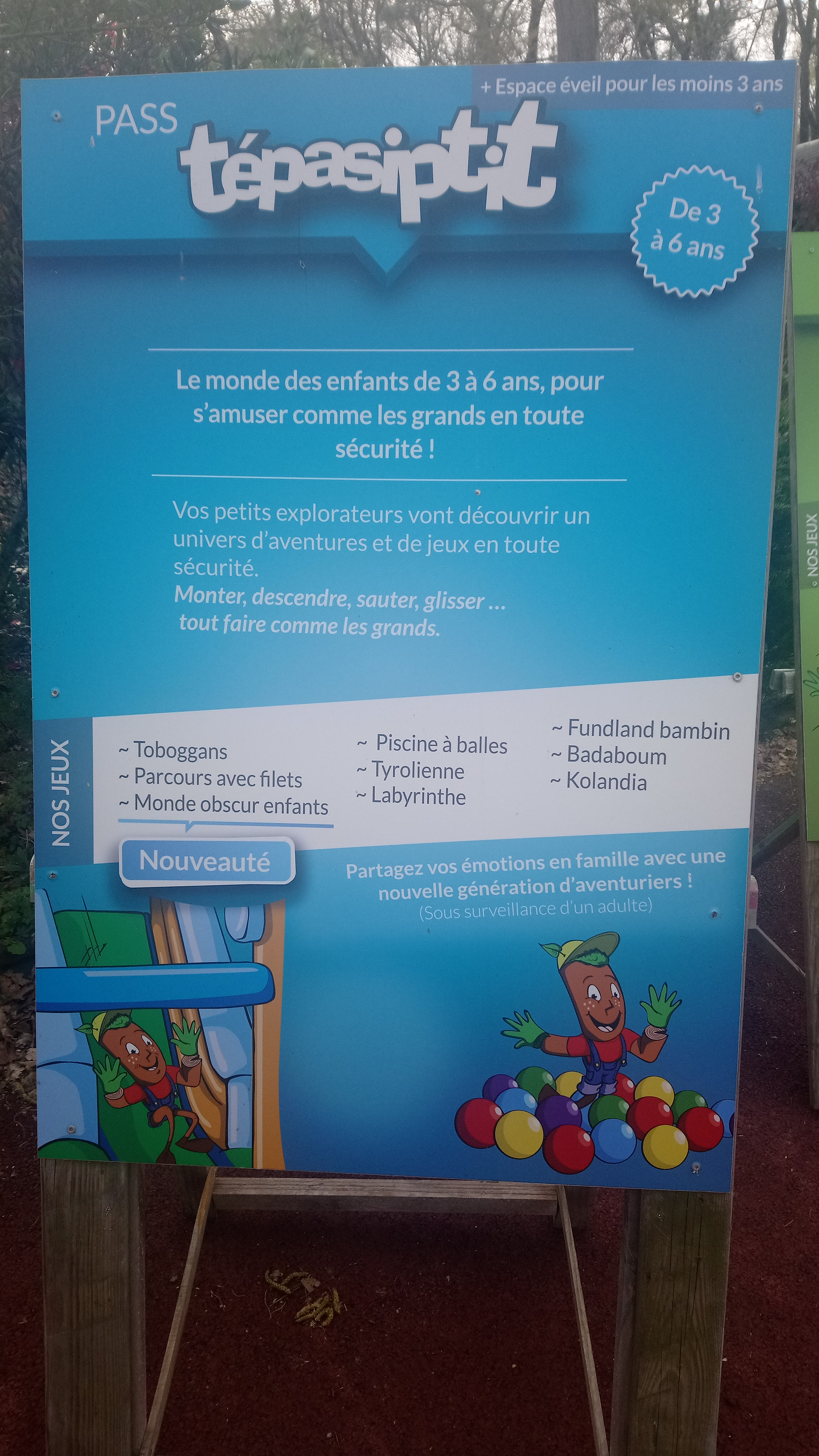 Pour la partie Tepasipti, très bien, nombreux jeux en toute sécurité. Modification de l'emplacement des jeux famille, plus visibles et conviviaux. Et pour la partie Fun, l'ajout de une à deux attractions supplémentaires serait un plus, actuellement c'est un peu vite fait... Hâte d'y revenir pour y tester l'accrobranche !