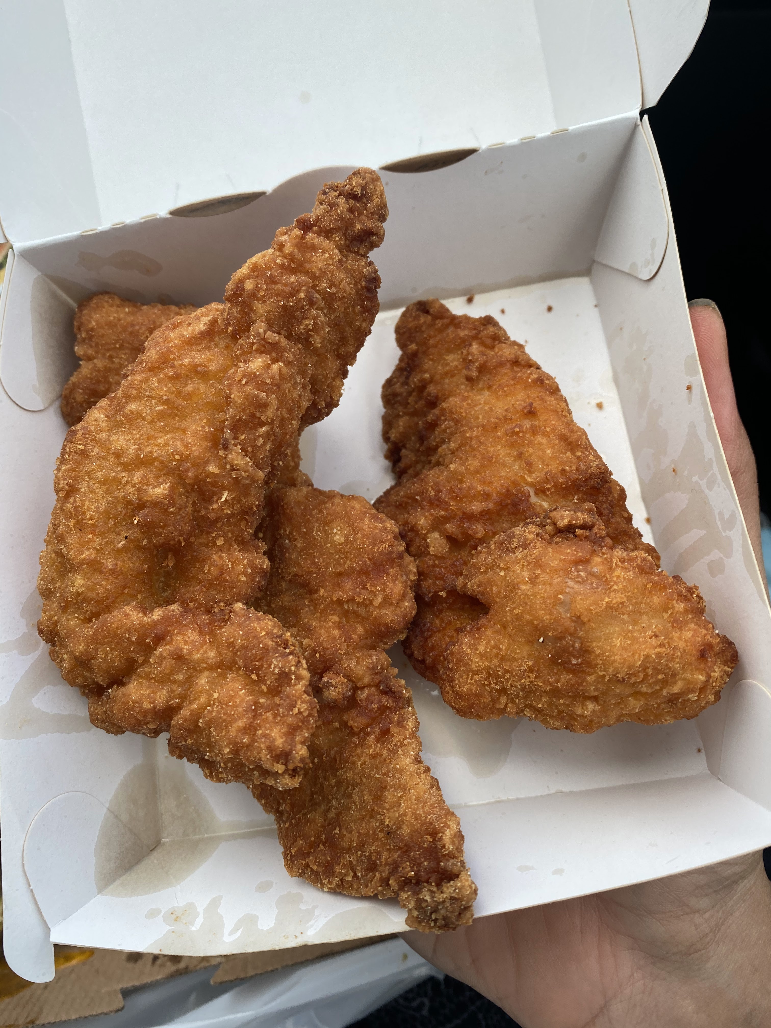 Je suis surprise de lire des commentaires positifs. Le burger était juste immangeable, la sauce cheddar trop envahissante. Aucun goût. Les pire tenders que j’ai pu gouter. 3 pièces de tenders pour 5€ faut vraiment en avoir envie. Au final ça a terminé à la poubelle. Aucune hygiène ni geste barrière, le personnel ne porte pas de masque Je n’y remettrais plus jamais les pieds.