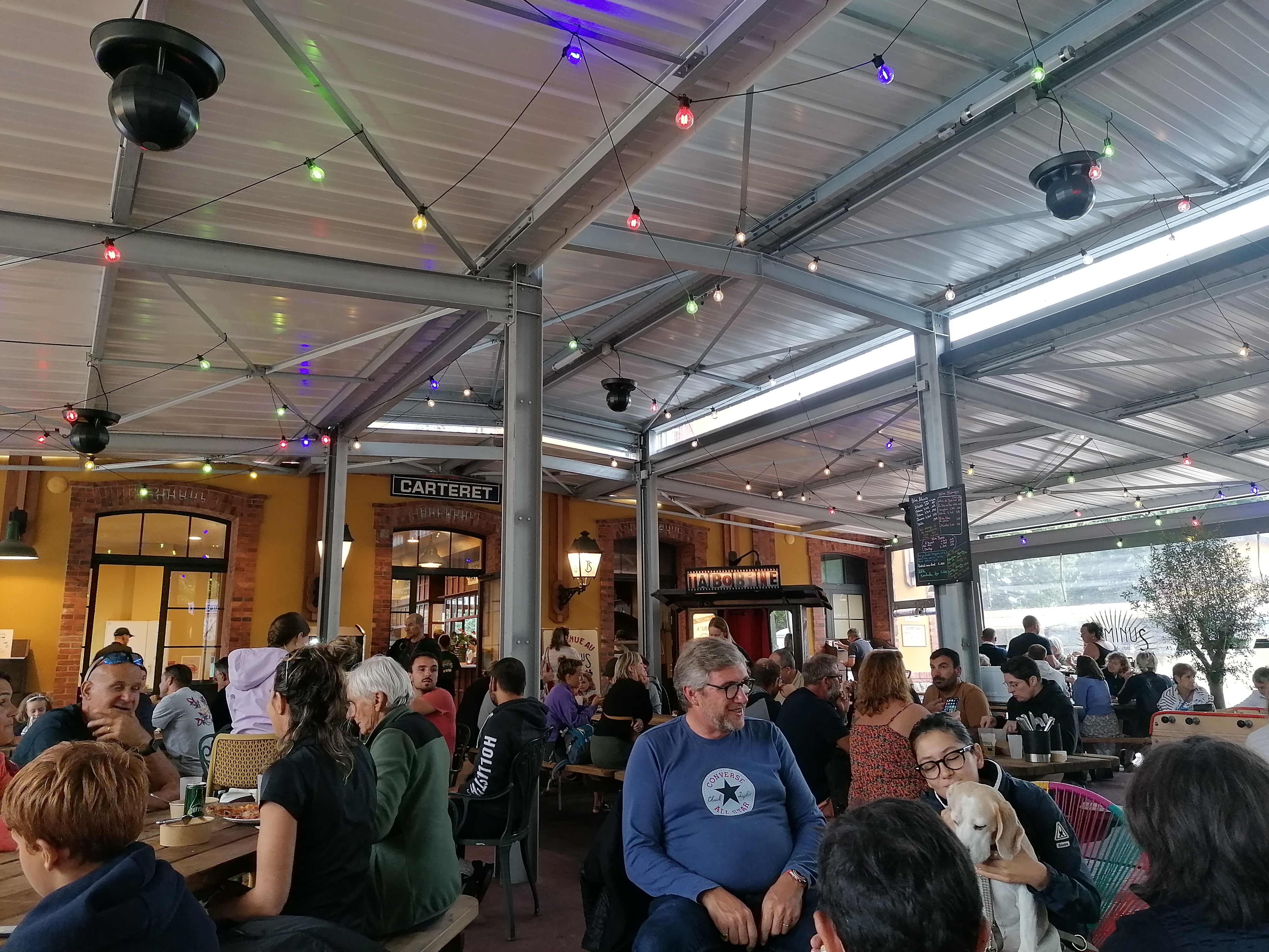 Lieu où il faut être vu. Le concept est sympa. Mais trop bruyant et l'été ça va on a le choix de manger à l'ombre sous le carport ou sur le terrain ou des tables ont été aménagées. Mais à l'arrière saison ????