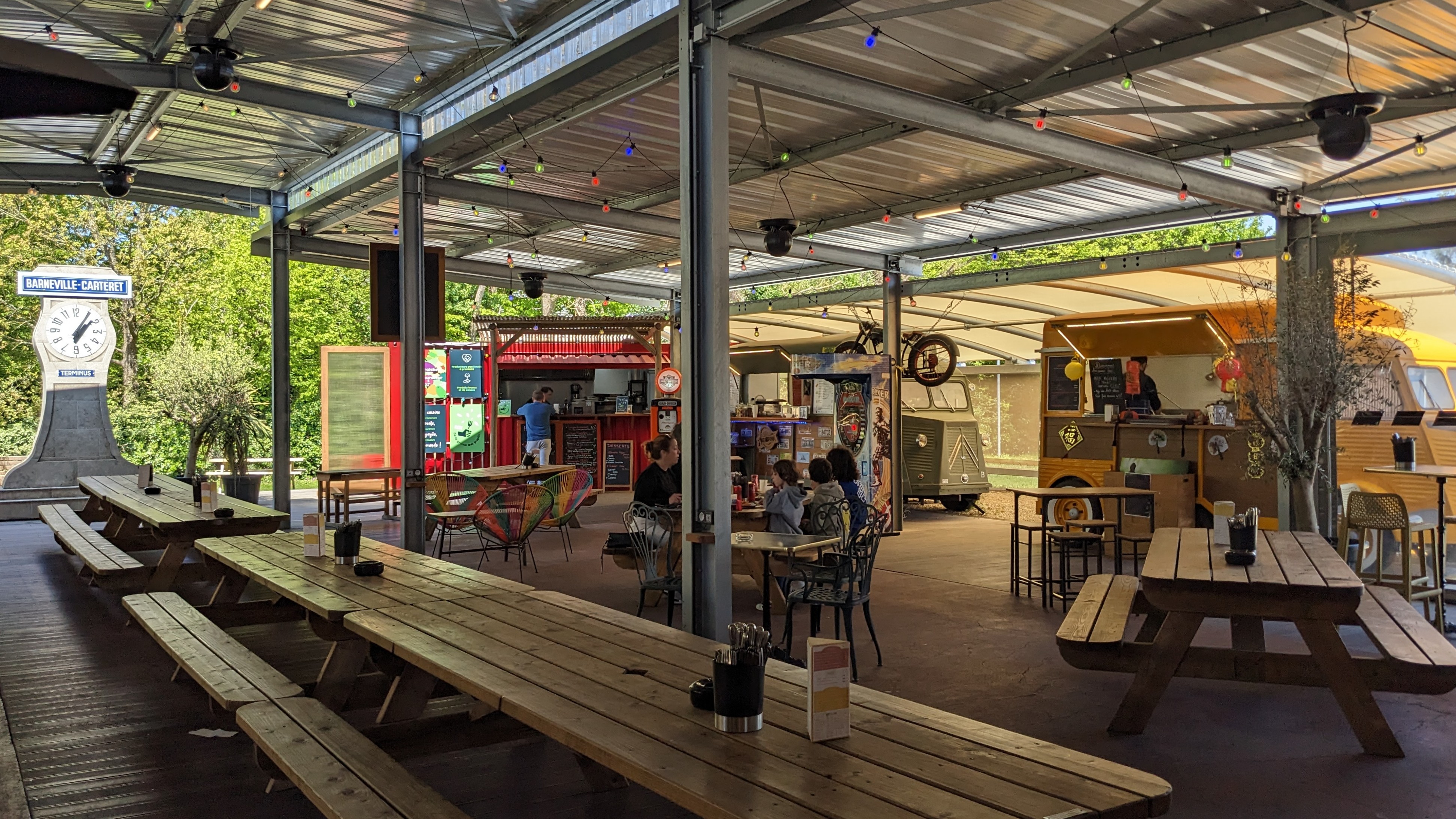 Concept super original ! De faux fourgon Citroën déguisés en foodtruck dans un lieux où l'on peut prendre son temps et déguster de bons petits plats .