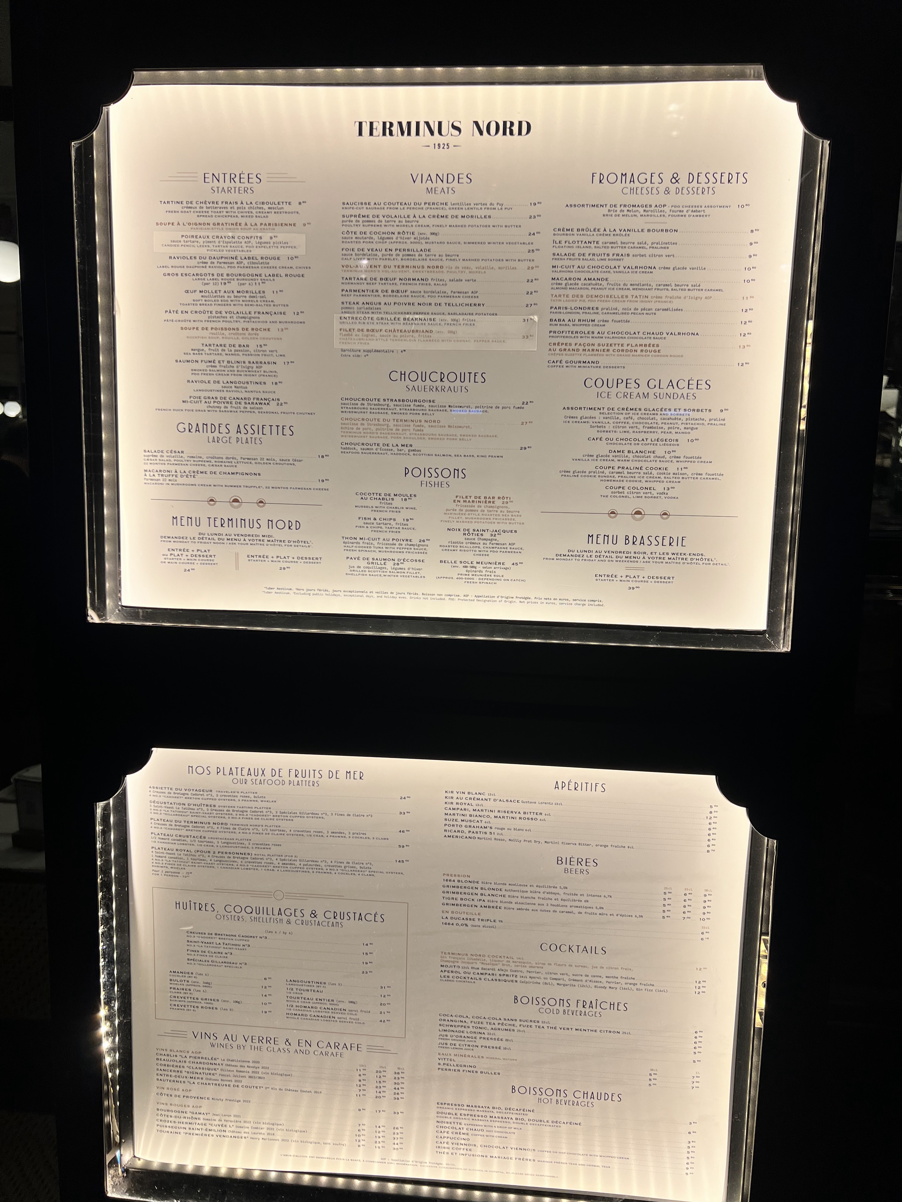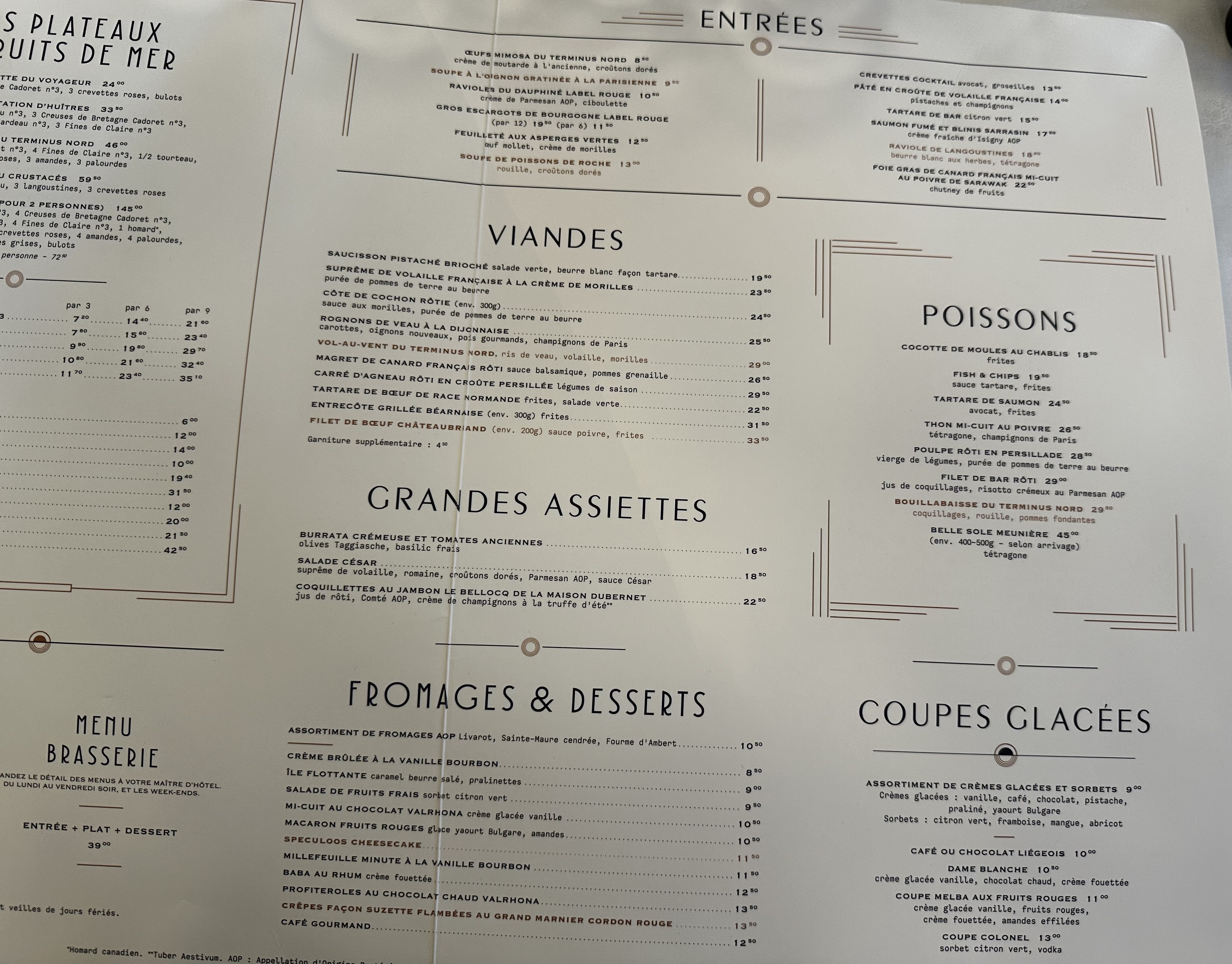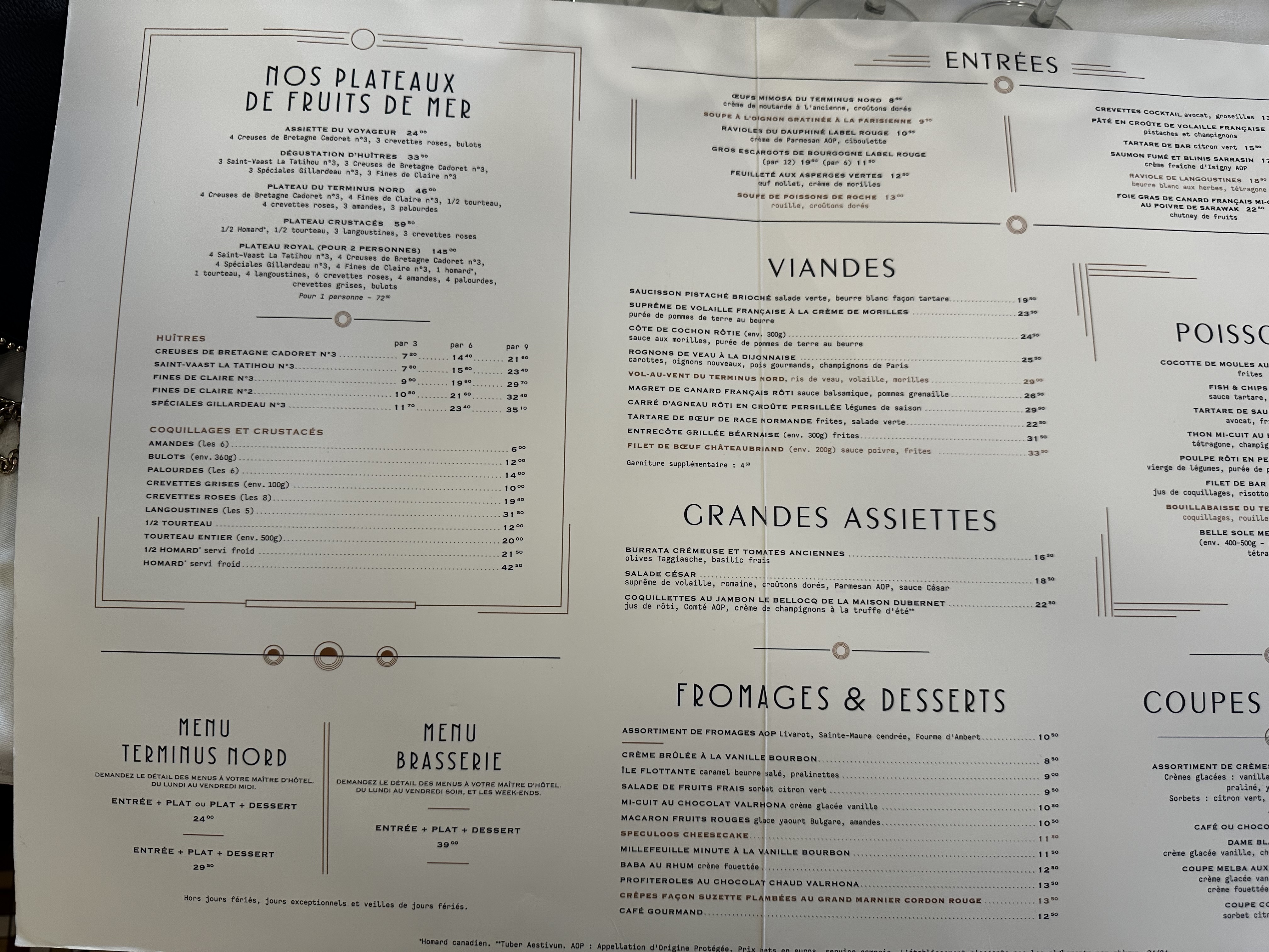 Un restaurant français historique en face de la Gare du Nord. Fruits de mer très frais et bon vin