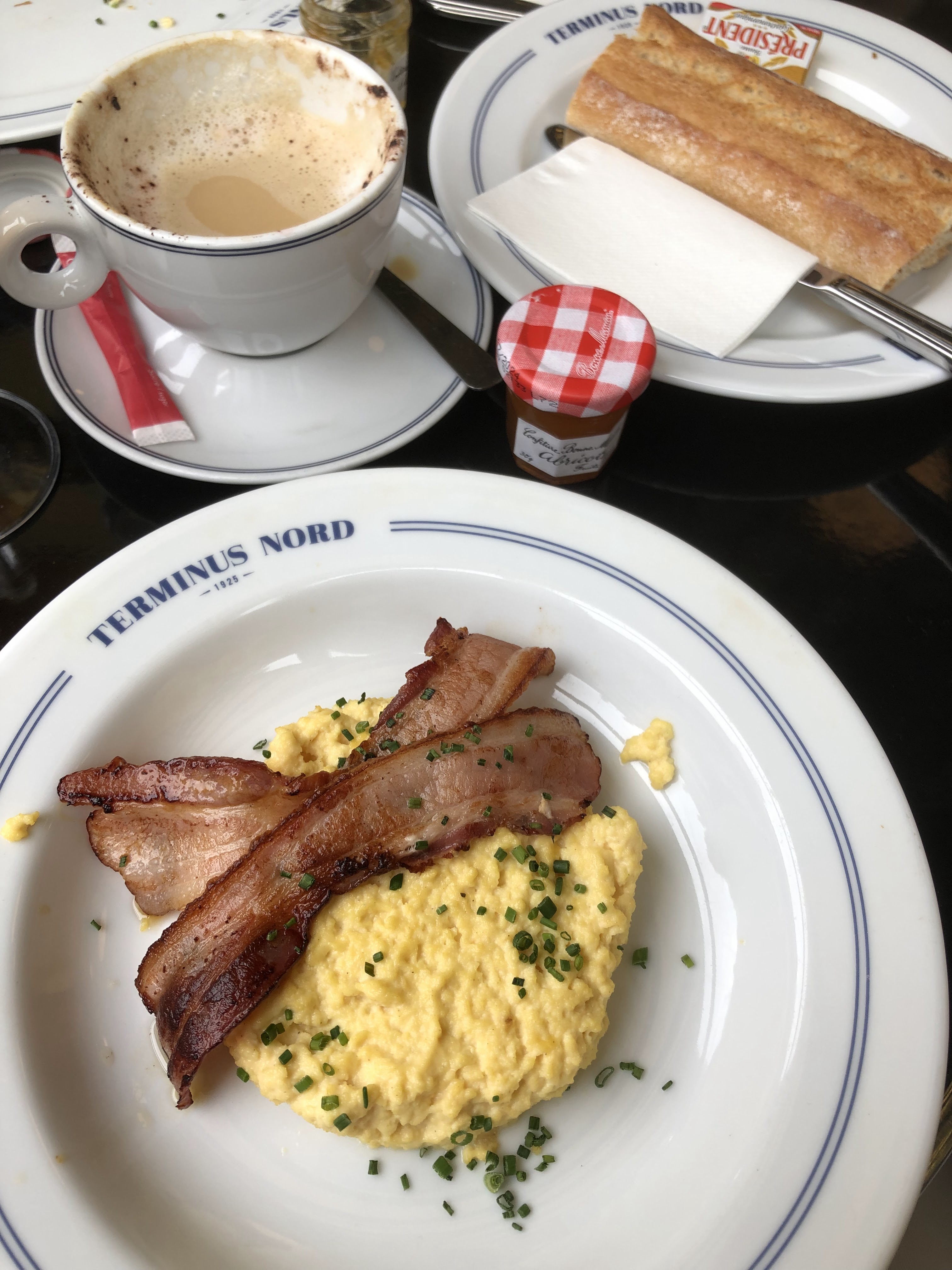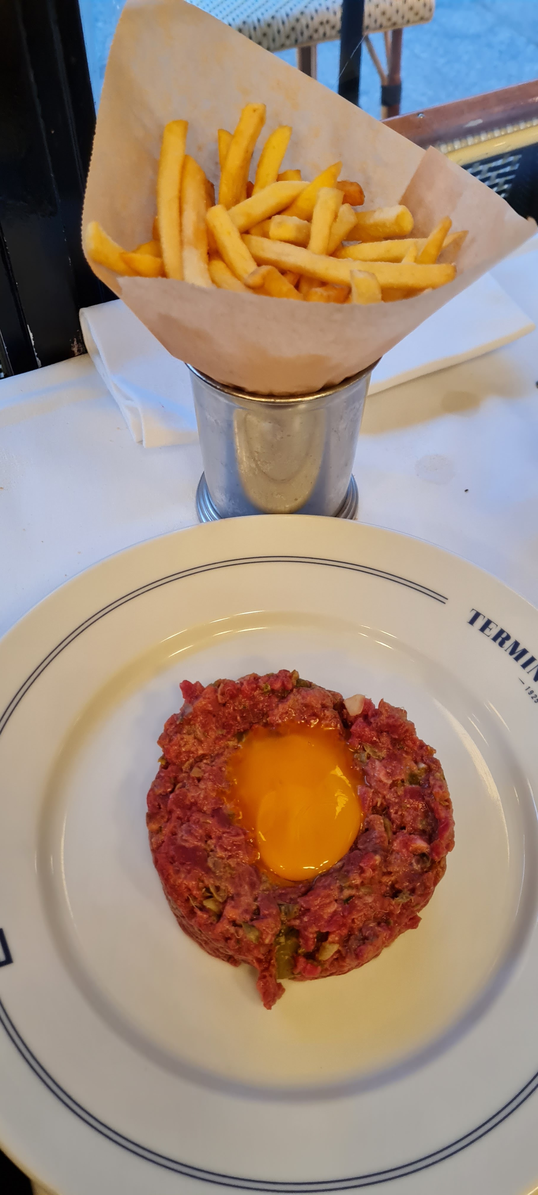 J'y suis allé pour le petit-déjeuner car notre ami devait partir pour Londres, j'ai donc décidé de réserver pour 3 personnes à 10 heures la veille. Quand nous sommes arrivés là-bas, j'ai vu que le personnel disait à certains clients qu'ils n'avaient plus de place, et quand j'ai demandé, il a dit en français plus de table, et je me suis dit… j'ai déjà réservé pour 3 personnes, merci… et il c'était comme, ahhhh…c'est vous, allez-ici ! 🤣🤣 Apparemment, j'étais le seul à avoir réservé, et nous avons eu la plus belle table dehors avec le chauffage, près de la fenêtre ! Nous avons pris la formule petit déjeuner, j'ai pris celle du Terminus qui était…beaucoup !! Cela vaut vraiment le coup si vous avez faim et avez besoin de voyager. Le bon était vraiment bon aussi, le croissant était beurré, parfait pour être trempé dans mon cappuccino, l'œuf et le bacon étaient parfaits aussi. Je pense que c'est un très bon endroit pour le petit-déjeuner ! 😍❤️ P.S. Essayez de réserver en ligne si vous envisagez de dîner ici car apparemment, cet endroit est très fréquenté par les clients. Remercie moi plus tard! 😁👍🏼
