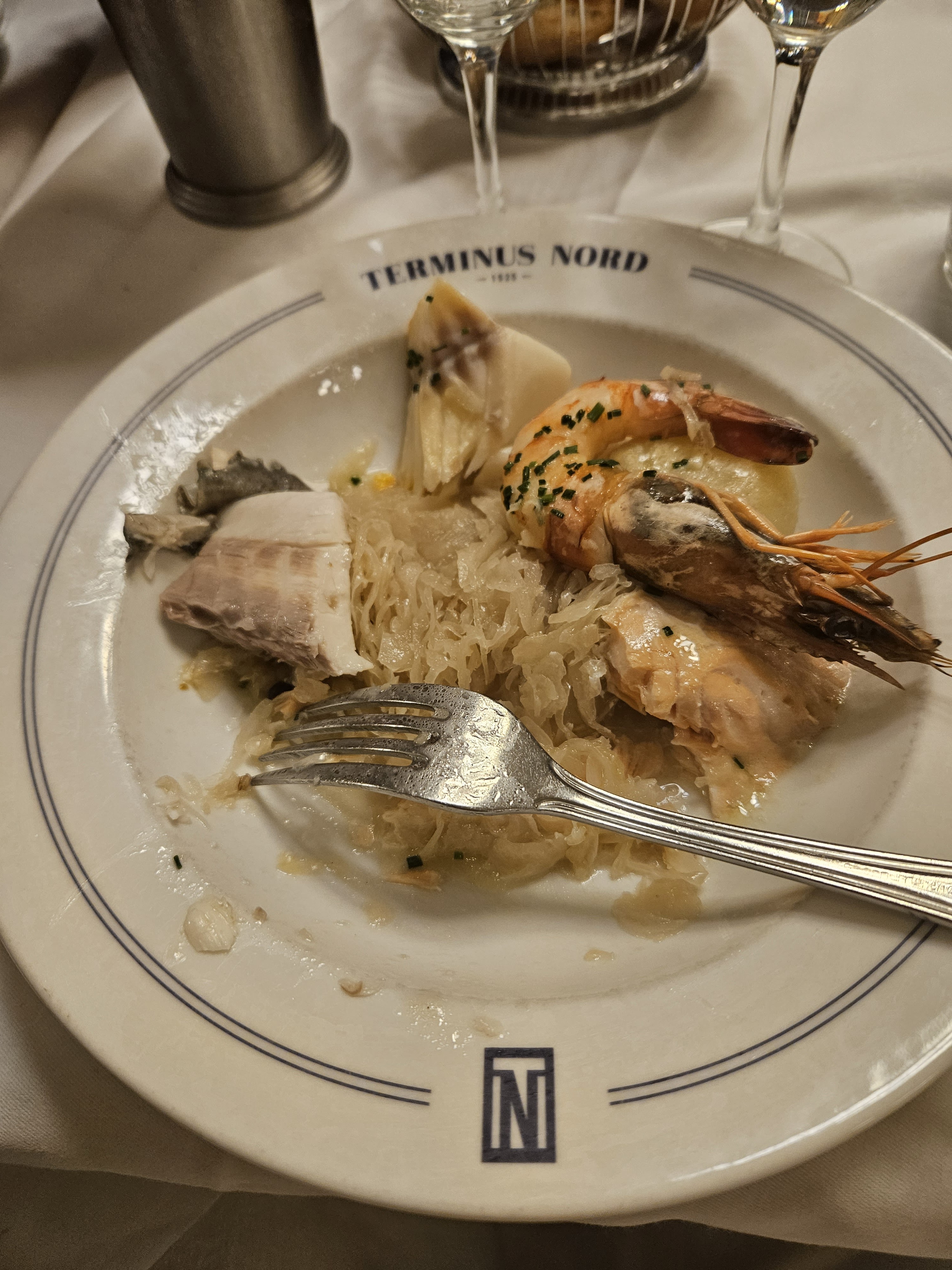 Impossible de recommander le Terminus Nord. Cet établissement a trop baissé et j’ai peur d’avoir diné dans une gargotte très médiocre avec un prix de bon restaurant. Dîner fichu, sans aucune excuse pour le vin blanc tiède et les moules à peine tièdes et racornies. Bon dessert cependant. L’esprit Brasserie du Terminus a disparu ? J’en ai peur. Pour moi ce soir c’était du n’importe quoi, du vol ! Je ne conseille évidemment pas