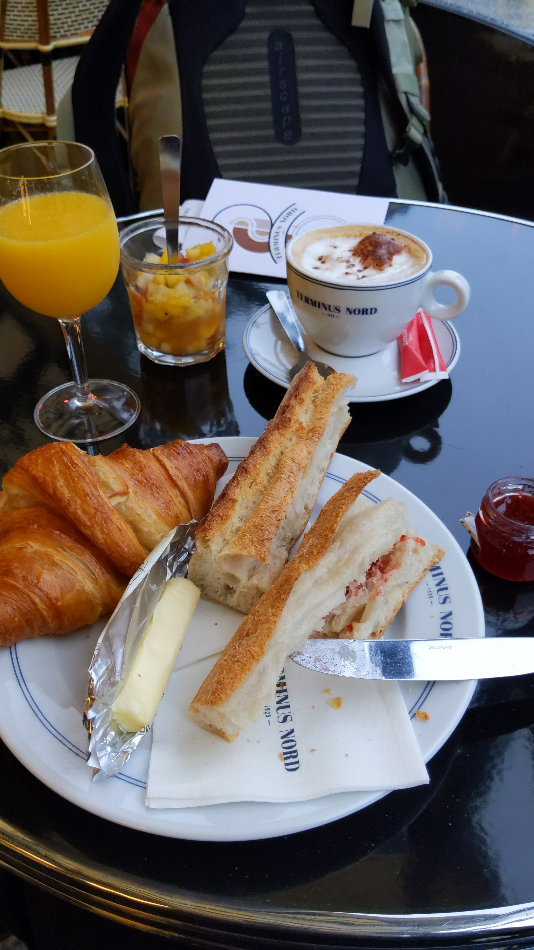 Cet endroit se trouve juste en face de la gare et il est agréable de s'imprégner de la foule parisienne du matin avec le petit-déjeuner standard.