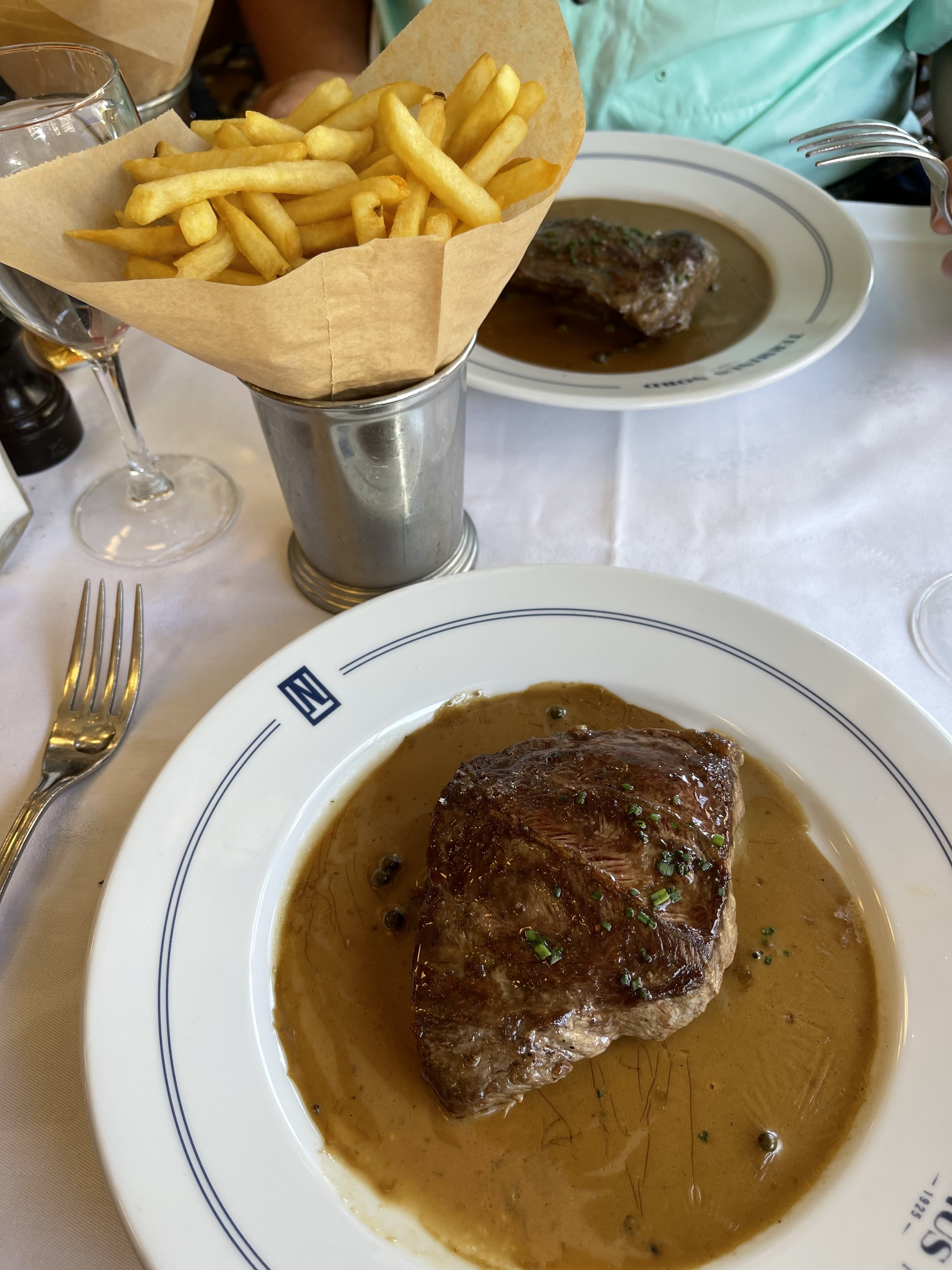 Bon pour les voyageurs à la recherche d'un repas français rapide de qualité et d'un cadre typique. Ma soupe à l'oignon était très bonne, le steak était tendre et délicieux. Au lieu d'un tas de frites j'aurais apprécié une salade verte ou moins de frites, mais de meilleure qualité.