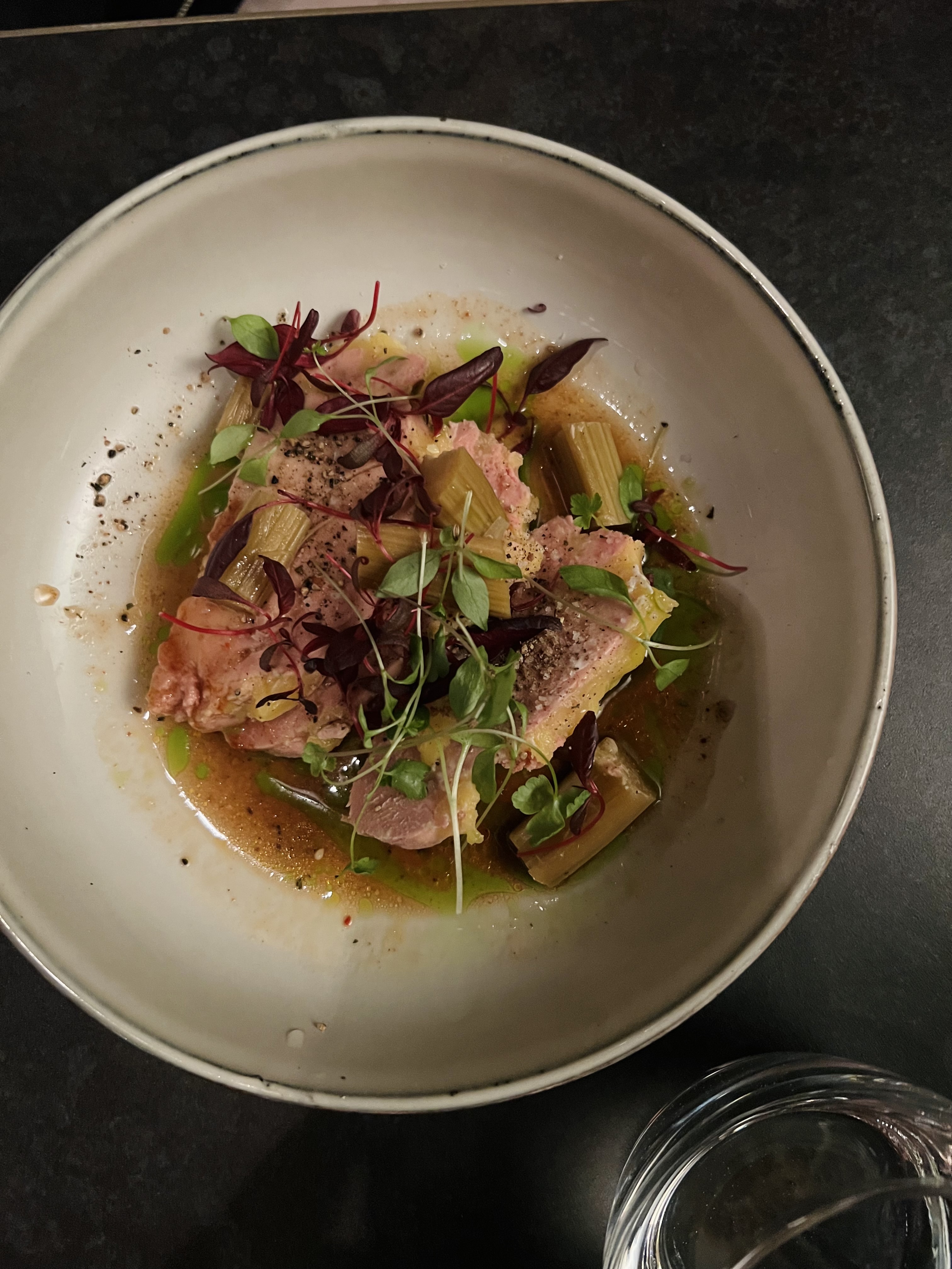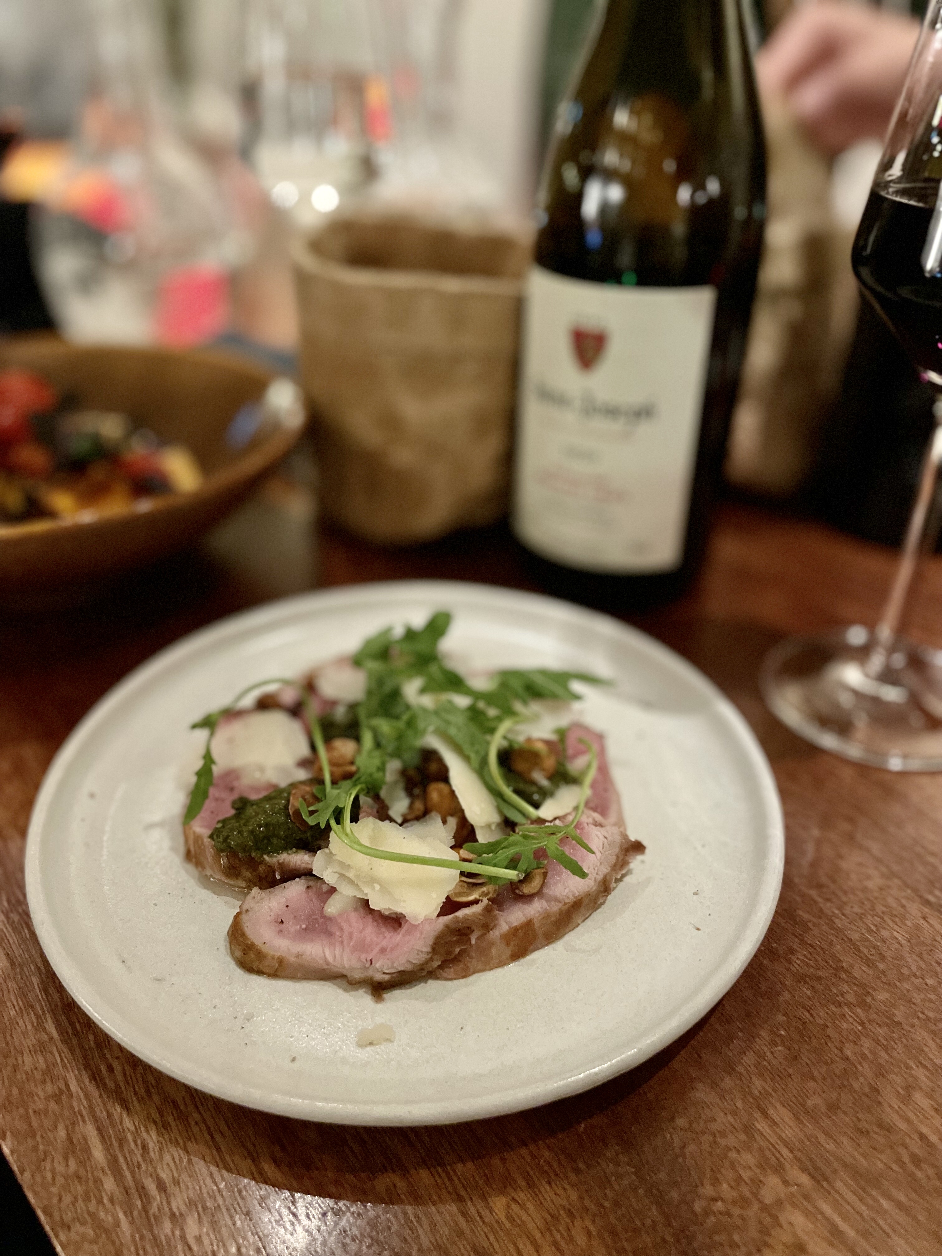 Dîner avec des amis Équipe du restaurant attentionnée , jeune, passionnée Des vins à tomber Bien entendu l'idée du plat xxl à partager rajoute au côté convivial , feutré de l'endroit. La cuisine est surprenante excellemment exécutée nous n'avions jamais mangé une poitrine de porc aussi fondante et les gnocchis sont à tomber. Allez y sans hésiter, de plus la carte change tous les mois Nous reviendrons à coup sûr