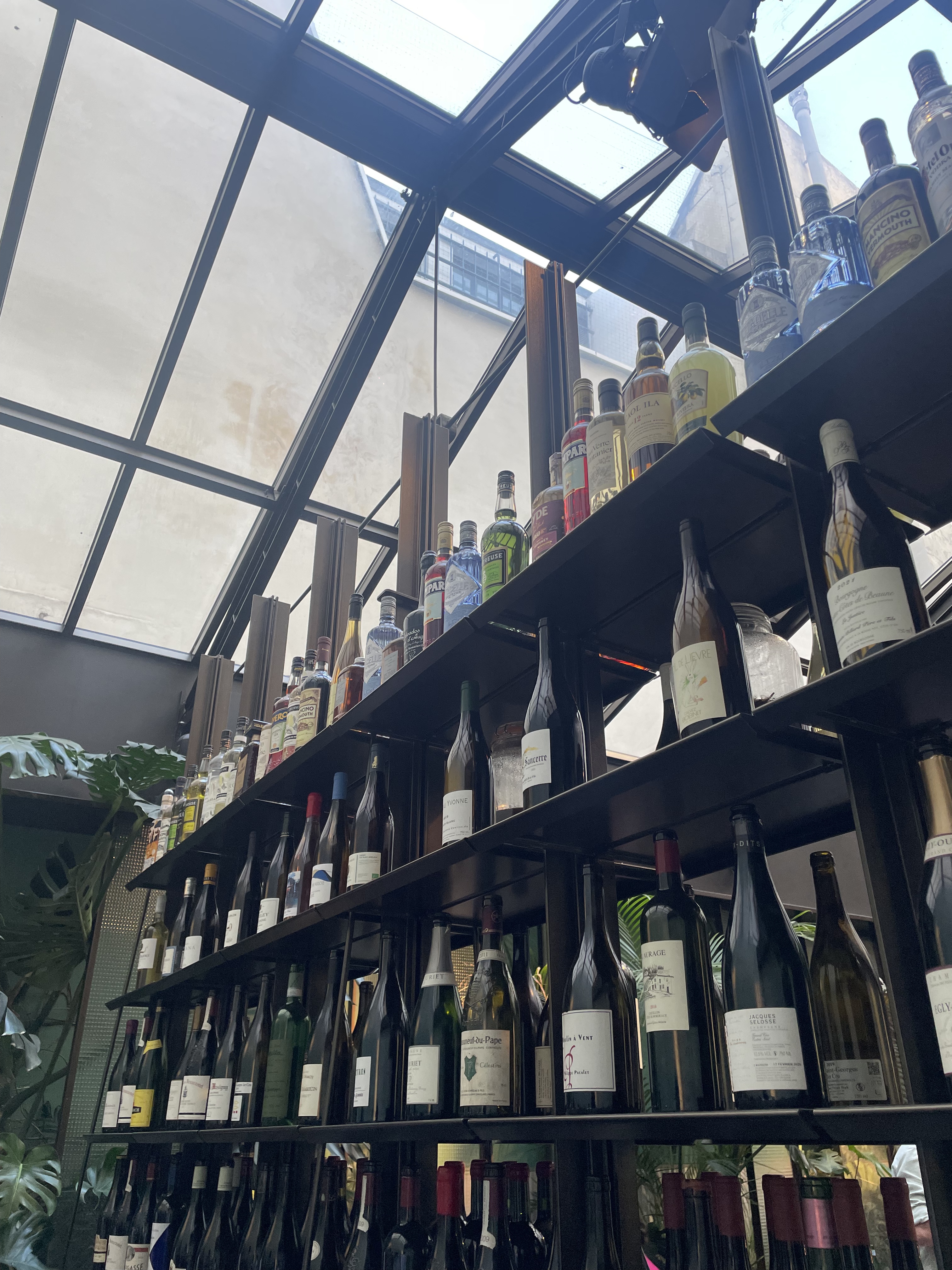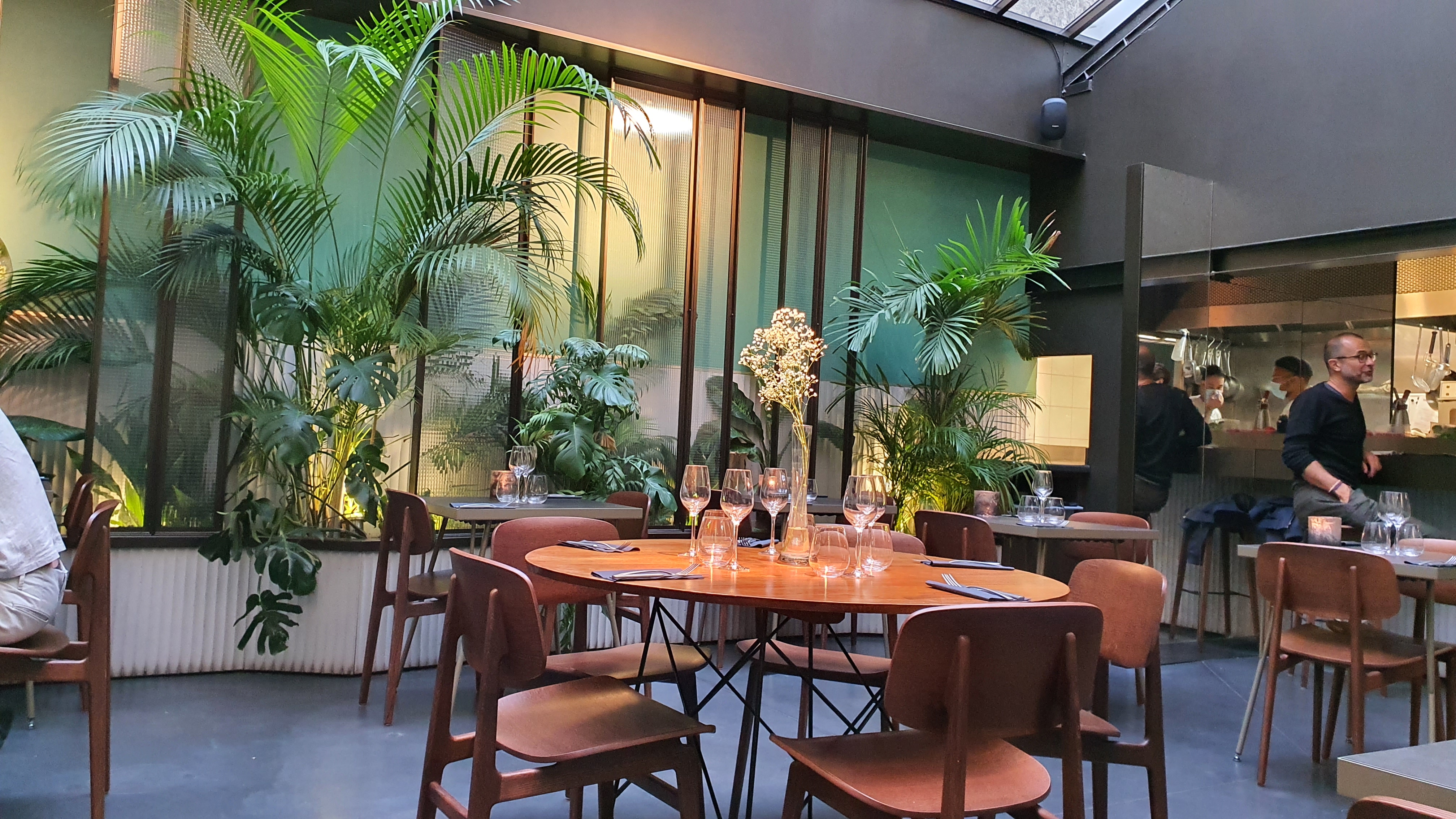 Dîner sous une verrière, vue sur la cuisine ouverte...les plats sont généreux, la cuisine maison et délicieuse. La carte des vins est très belle mais attendez vous à de jeunes millésimes. J'y vais très régulièrement, j'y ai emmené plein d'amis, tout le monde est ravi à chaque fois.