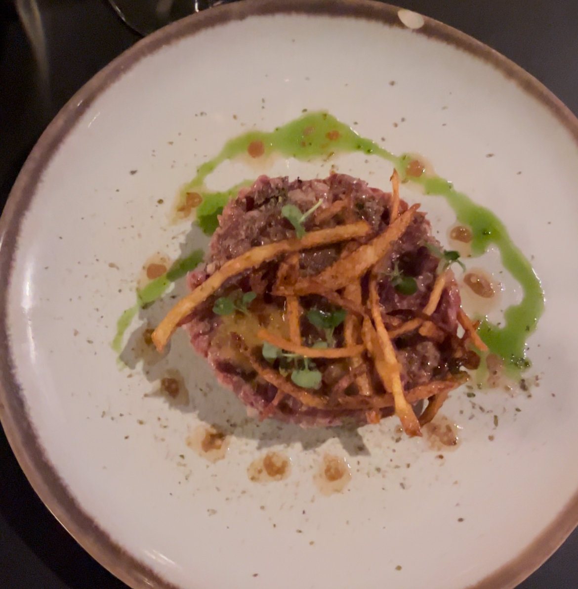 J’ai récemment dîné chez Terra et ce fut une superbe expérience. Le filet de bœuf était tout simplement délicieux, tendre à souhait et parfaitement cuisiné. La sauce au poivre qui l’accompagnait était divine ajoutant une touche de saveur audacieuse à chaque bouchée. Personnellement j’ai apprécié dîner sur le comptoir pour entrevoir les plats en préparation mais vous pouvez choisir d’être attablé. Le service était également impeccable, de plus ils nous ont reçu à 23h alors que nous n’avions pas de réservation et que les cuisines aller fermer.