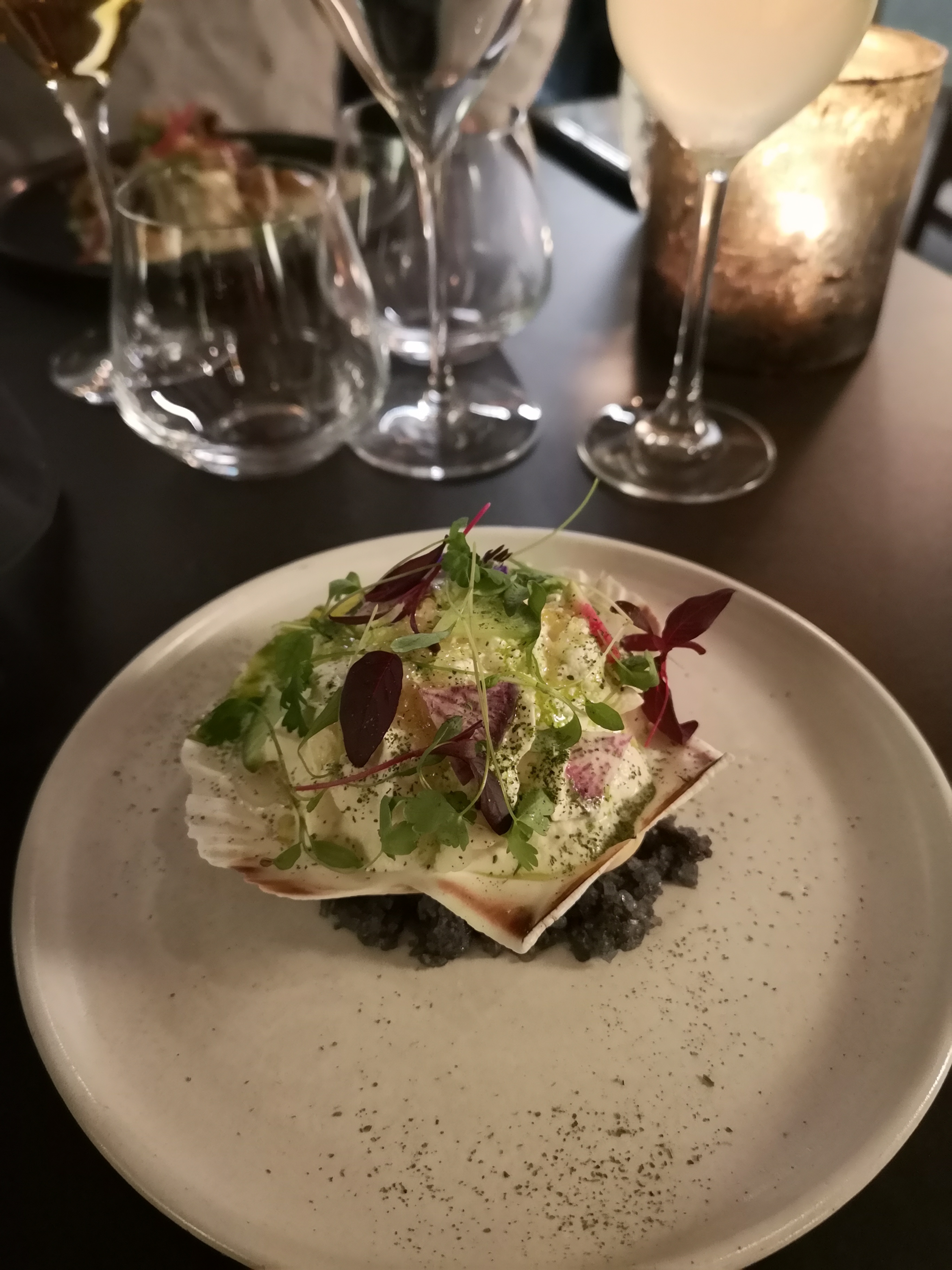 Restaurant assez récent ouvert par le chef Som Steven. Cadre tres épuré et plutôt sombre très agréable avec sa toiture en verrière. La carte change en fonction de la saison et des arrivages de produit. La nourriture est très bonne de l’entrée au dessert excellent, on s’est régalé. On ne sentait pas trop la truffe dans notre plat et le chef nous a apporté un supplément de beurre truffé. Nous avons été servi en parti par le chef du à manque de personnel et superbe accueil ravi que nos critiques soient bien prise et qu’ils fassent en sorte de rectifier cela sur le coup. La qualité et le travail derrière ses menus bien sûr se payent donc pas pour les petits budget. Nous reviendrons avec plaisir.