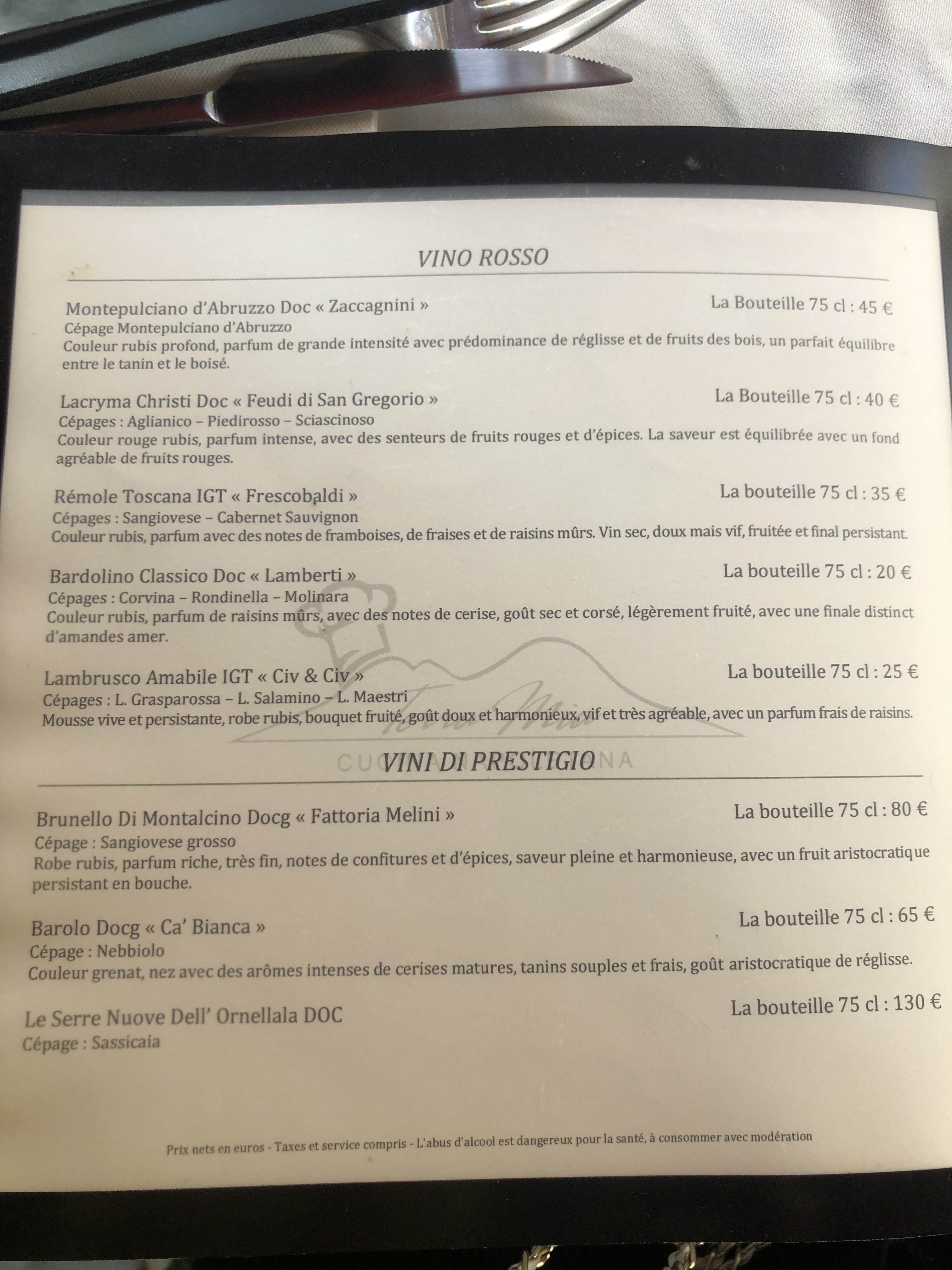 Bon restaurant, très bon accueil. Pas beaucoup de choix à la carte (pas de pizza, c'est rare dans un restaurant italien !) et donc une nourriture fraiche et de qualité qu'on retrouve dans l'assiette. Compter une vingtaine d'€/pers.
