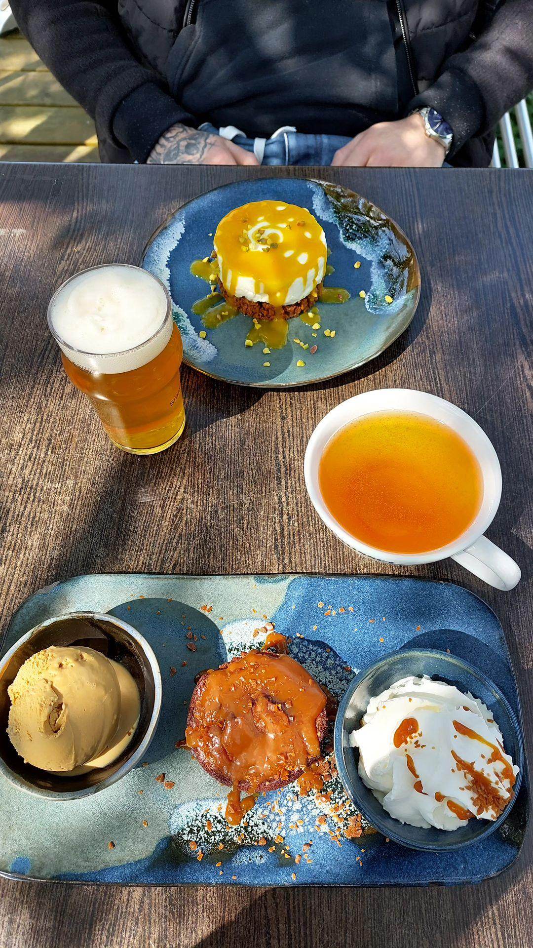 Nous avons sur les recommandations de l’office du tourisme pris 2 pâtisseries du jour : un cheesecake au fruit rouge et un muffin poire chocolat blanc. Les 2 desserts sont à tomber nous recommandons vivement de plus le cadre est très beau surplombant la rivière et le personnel souriant