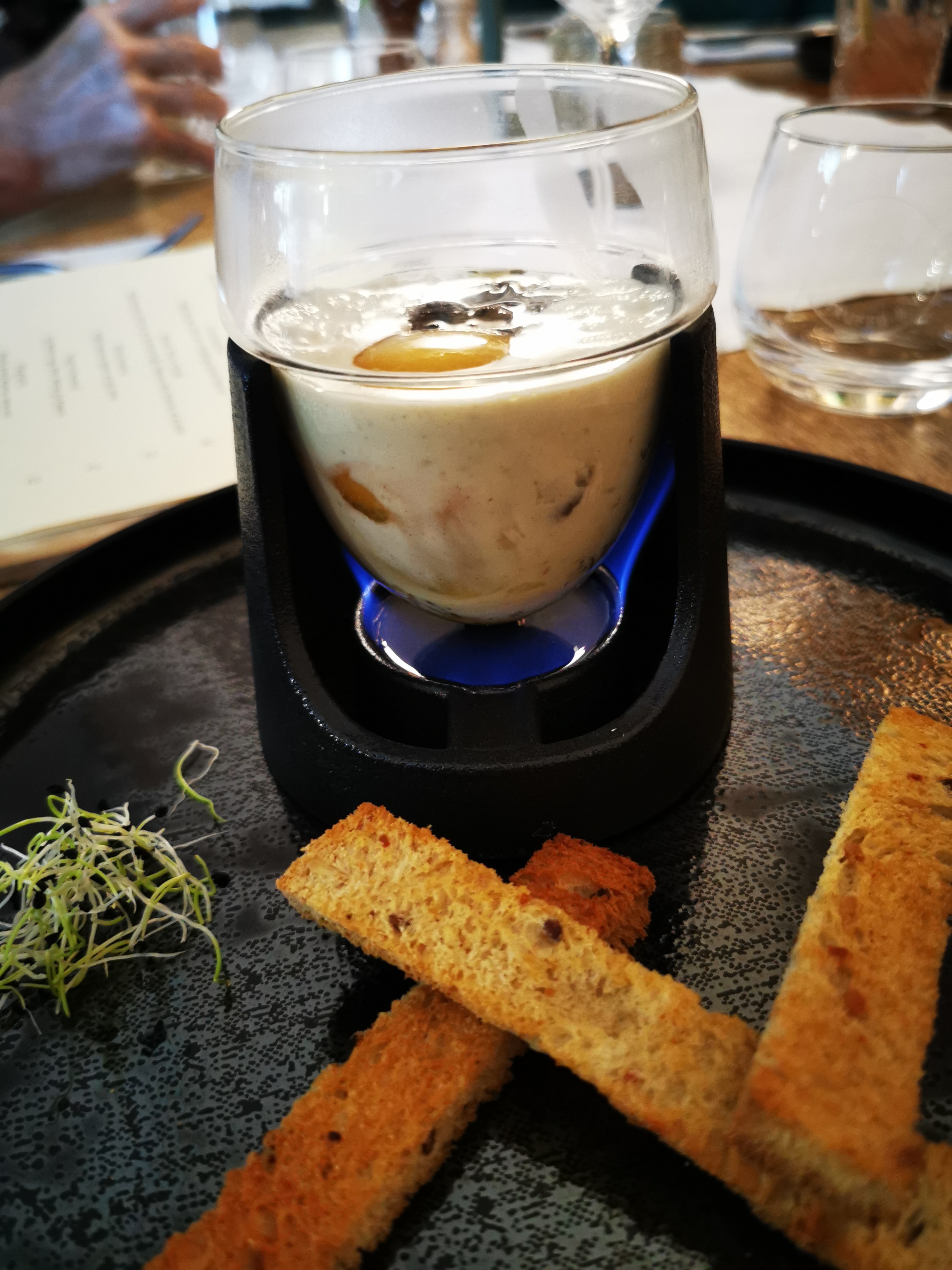 Nous sommes venu en couple. La décoration est super sympa, convivial. La cuisine est excellente et la présentation est soignée et vraiment originale pour certains plats, ce qui a été largement apprécié. Mon petit point de déception est concernant la truffe, elle n'est pas toujours aussi présente selon les plats, due probablement à la saveur d'une truffe à l'autre et c'est dommage. La patron vient nous saluer en personne à la fin du repas et est avare de retour, ce qui montre qu'il est à l'écoute du client dans l'esprit de nous satisfaire. Nous avons passé un agréable moment c'est une belle adresse.