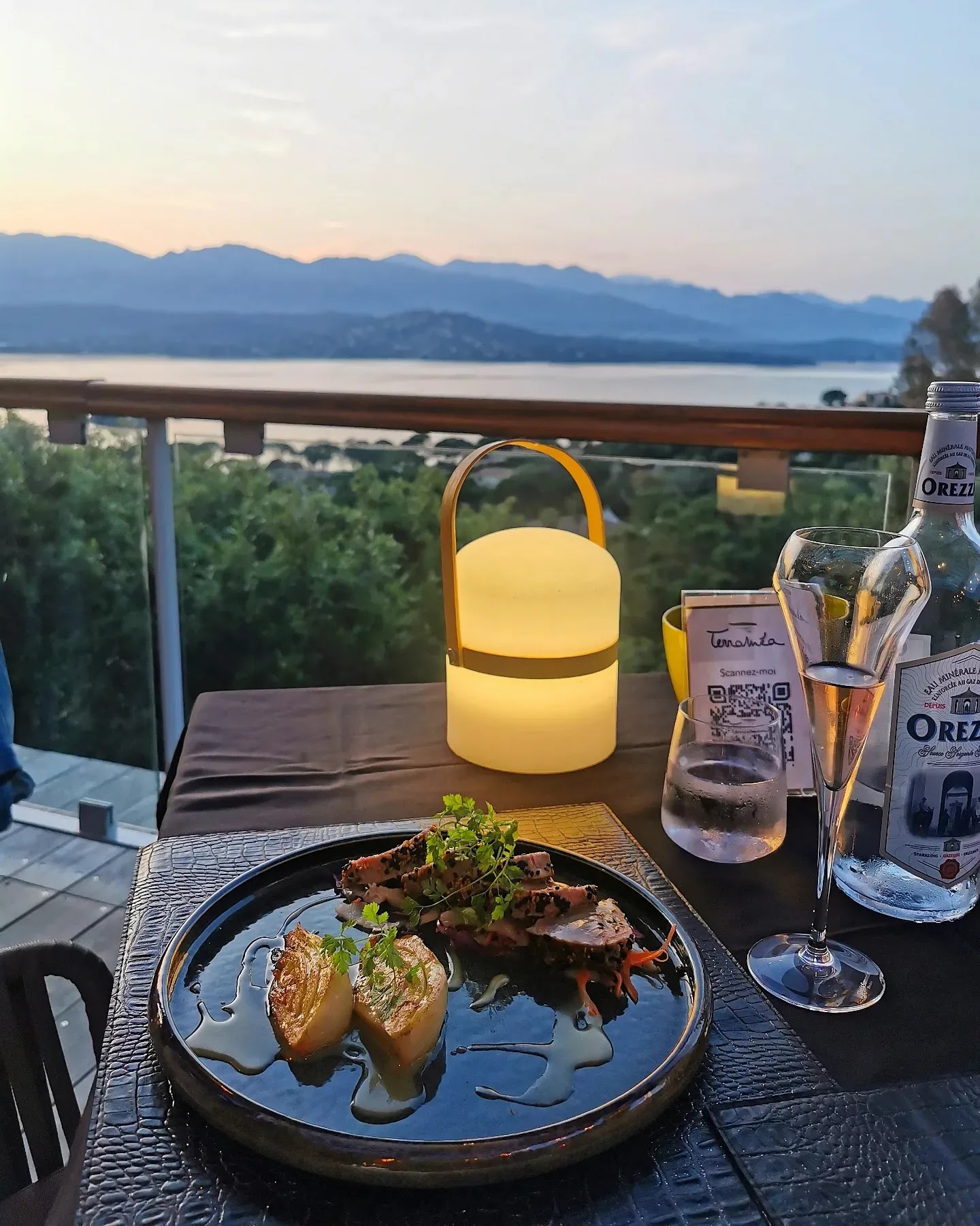 Superbe expérience! On en prend plein la vue et plein les papilles! La terrasse offre une vue incroyable sur le golfe de Porto-Vecchio, les couleurs au coucher du soleil sont somptueuses! Le spectacle est encore plus agréable accompagné d'un Spritz champagne! On continue avec une cuisine raffinée pleine de fraîcheur. Mention spéciale pour le carpaccio de boeuf à la truffe blanche d'été.. une tuerie! Et pour finir, l'accueil est extrêmement chaleureux, la patronne est aux petits soins pour ses clients et très sympathique ! Je recommande +++