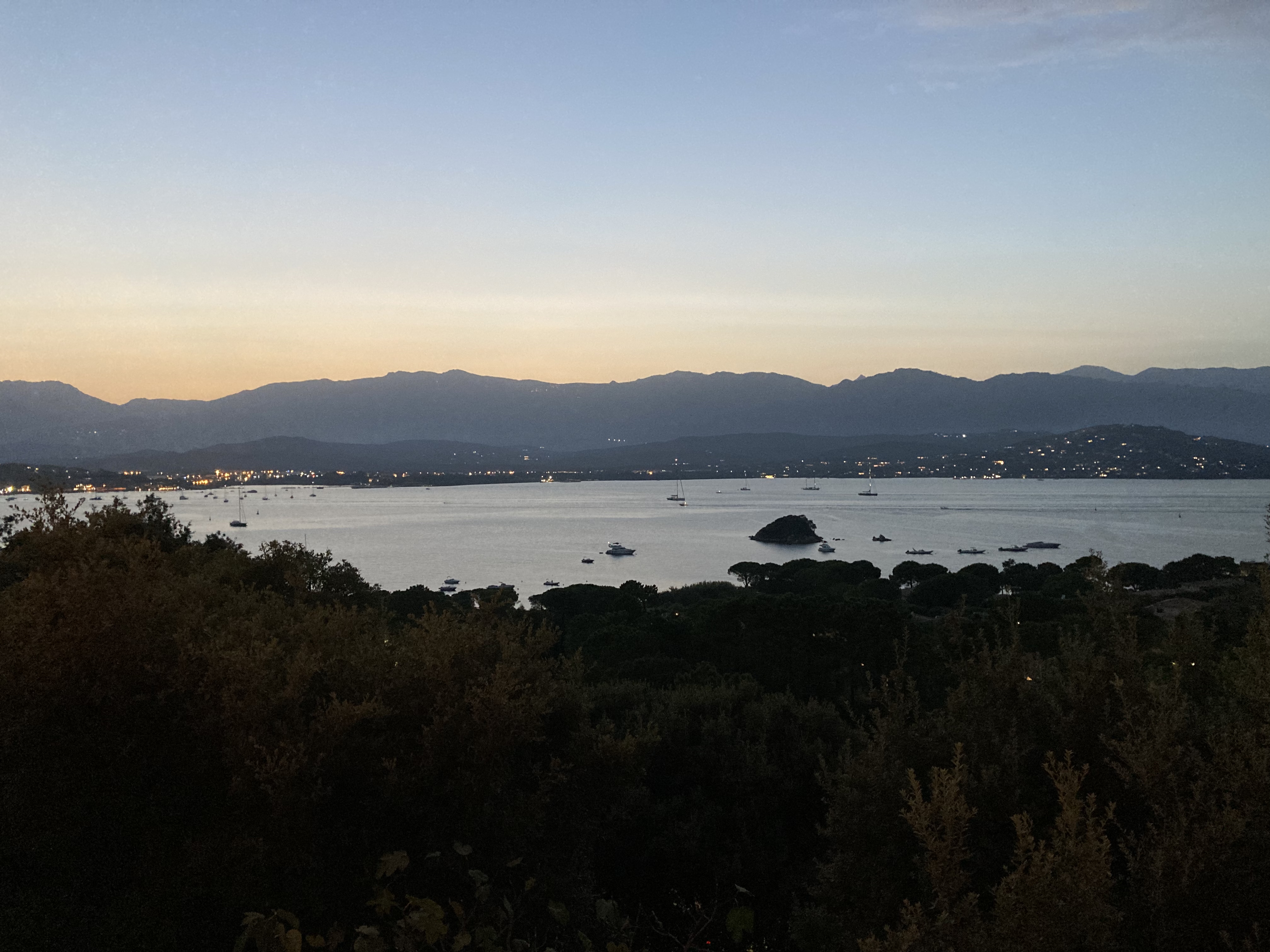 Cadre idyllique, vue sur toute la baie de Porto-Vech, à faire avant le couché de soleil. Plats très bon