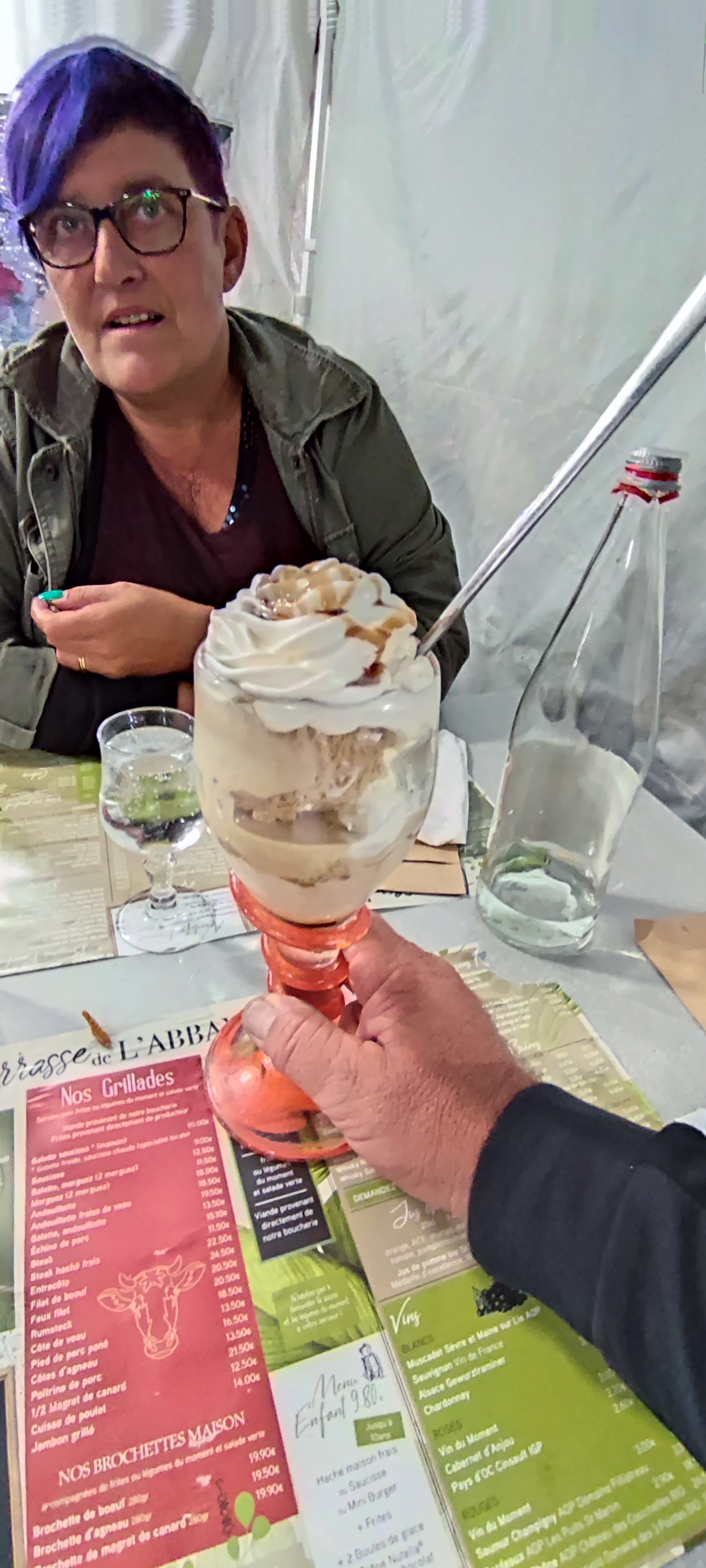 Très bien servi surtout, un gros reuch pour le service, donc également en cuisine en ce premier week-end de saison ou nous sommes allés. Alors toute nos félicitations à tous et je dis bien a toute l équipe. Et tout est délicieux, petite anecdote. La prochaine fois que je vais chez vous, je demande un réhausseur ou une chaise haute pour manger ma glace 😂😂 Je demanderai dans une coupe
