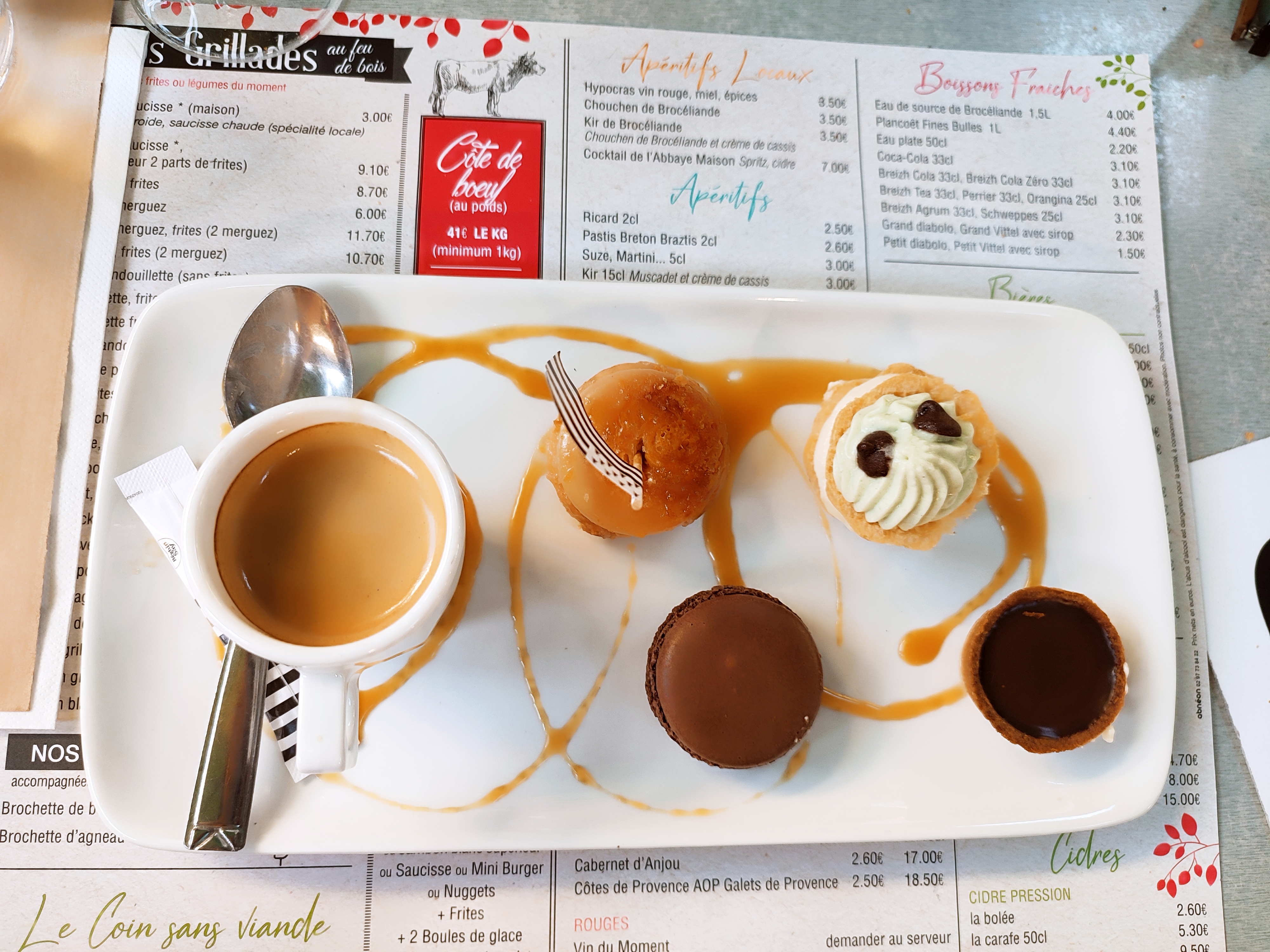 Une belle surprise ! Manger en terrasse au soleil un 20 octobre et en tee short. Le personnel est accueillant ! Le barbecue au centre de la terrasse donne envie de manger des grillades. La viande est bonne et les desserts sont excellents. Rapport qualité prix c'est très bien. A refaire dès que je reviens sur Paimpont 😉
