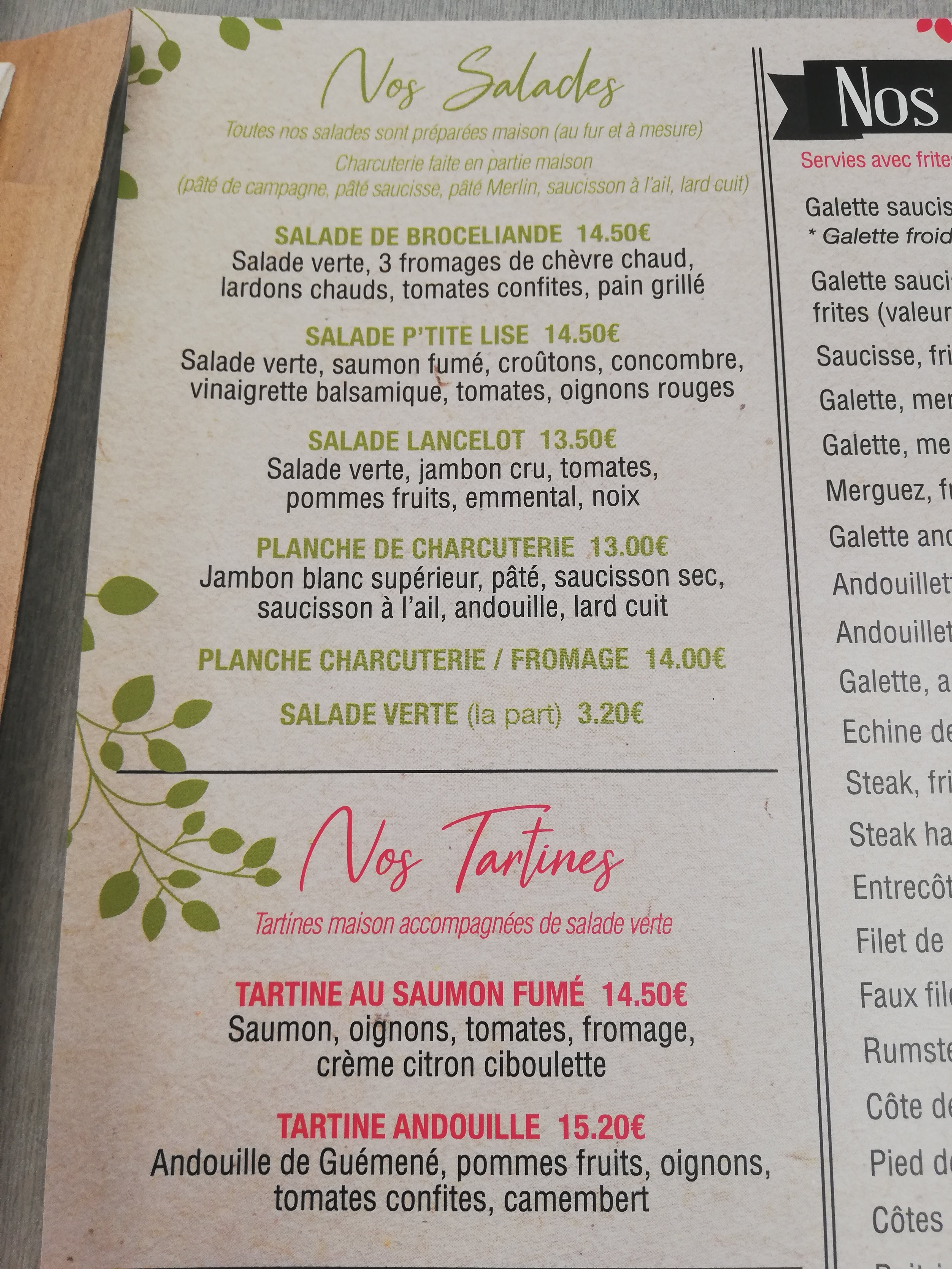 Si vous voulez vous aventurer dans la forêt de Brocéliande faites le avant le repas dans ce restaurant à la bonne franquette, repas très copieux avec viande et fromage de qualité...