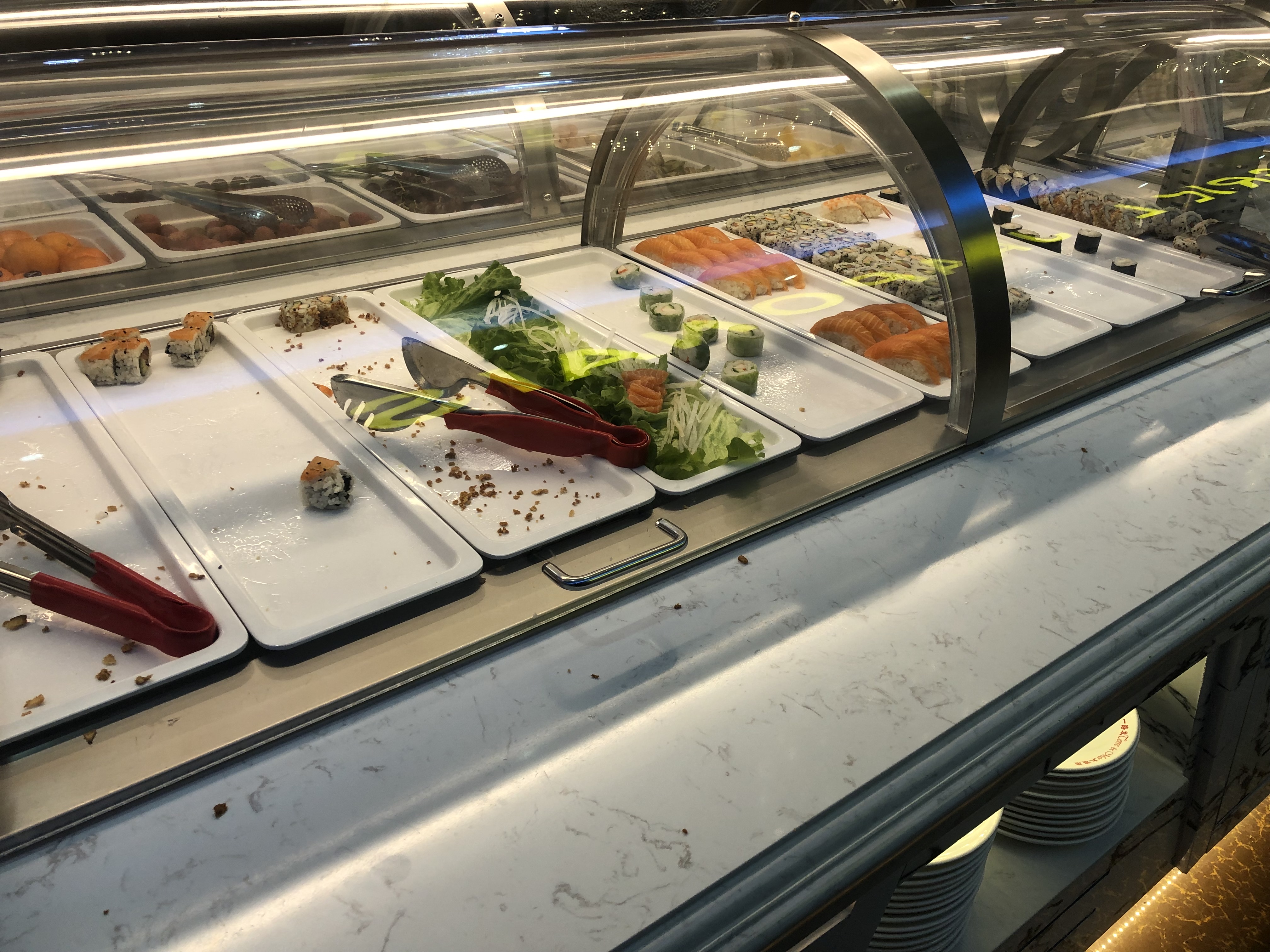 À éviter ! Poisson qui ne sont même pas dans la glace, sushi dur, crabe sans goût, paté séché, gâteau qui on une drôle d'allure. Les serveuses ne sont pas agréable, on vous regarde toute les 5 secondes pour savoir si vous avez fini. J'ai du arrêter de manger car j'avais une forte envie de vomir. Très déçu.