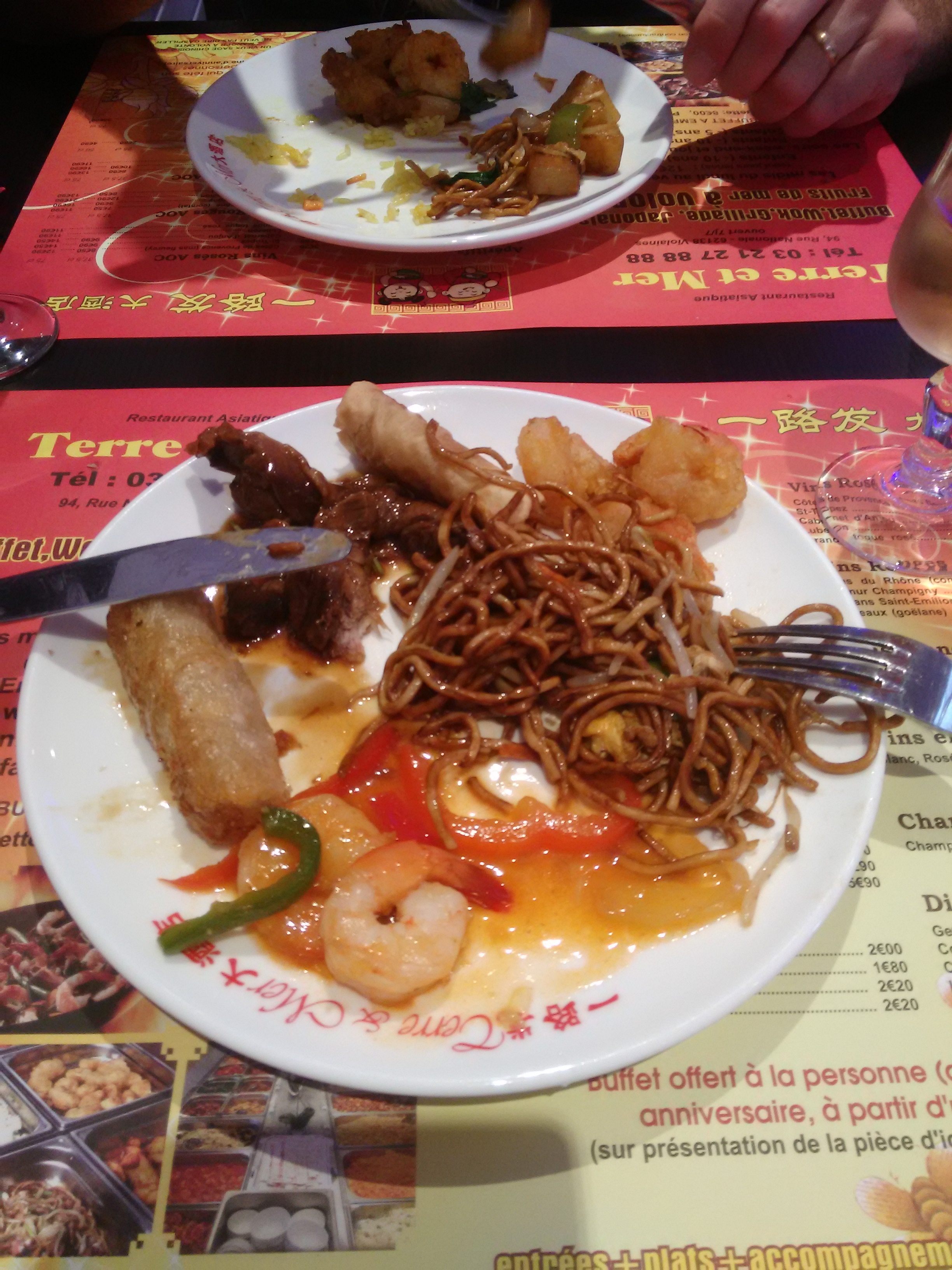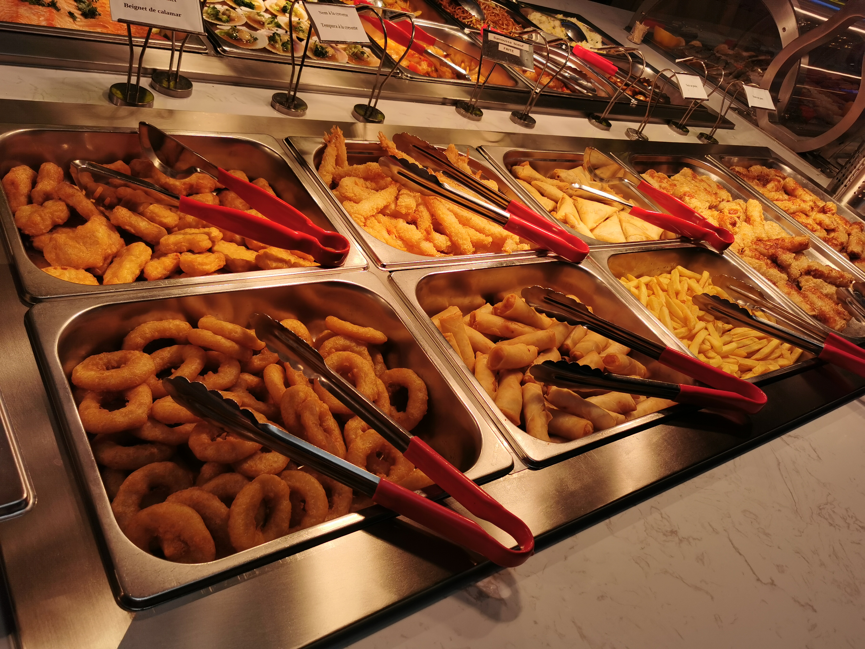 Plusieurs choses pendant notre visite dans ce restaurant nous ont poussé a ne plus jamais revenir: - arrivée a 19h, les plats sont froids, il avait tout juste commencé a les réchauffer. Passer son temps devant le micro-one n’est certainement pas agréable. De plus, certains produits était tres mal cuit et lorsqu’on le fait remarquer au personnel, aucune excuse, RIEN - le personnel n’est la que pour le chiffre. En effet, il ne sont pas agréable et pas organisé, incapable de prendre une commande de boisson. - 18€90 le menu à volonté pour un samedi soir pour des adultes, ok. Mais faire absolument mesurer les enfants pour faire passer le menu a 9€ au lieu de 5 en sachant qu’il n’ont presque manger parce que c’était froid c’est inadmissible! Préféré un restaurant de qualité qui ont l’accueil, l’hospitalité et ou les plats sont bons